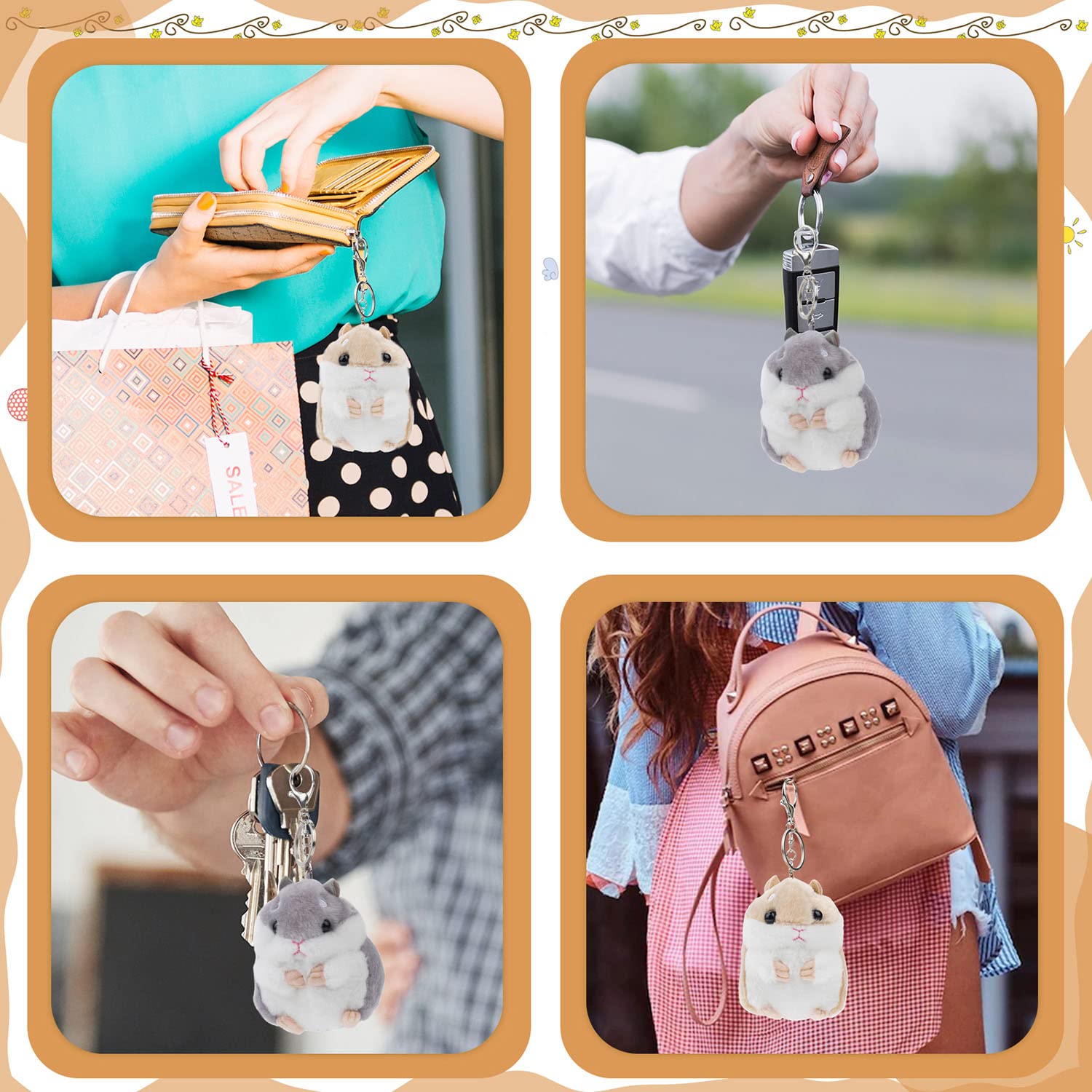 - Hamster size: 10 x 8cm / 4 x 3.15inch. The keychain is comfortable to hold in hand. safe to use. Bring more happiness to your daily life.