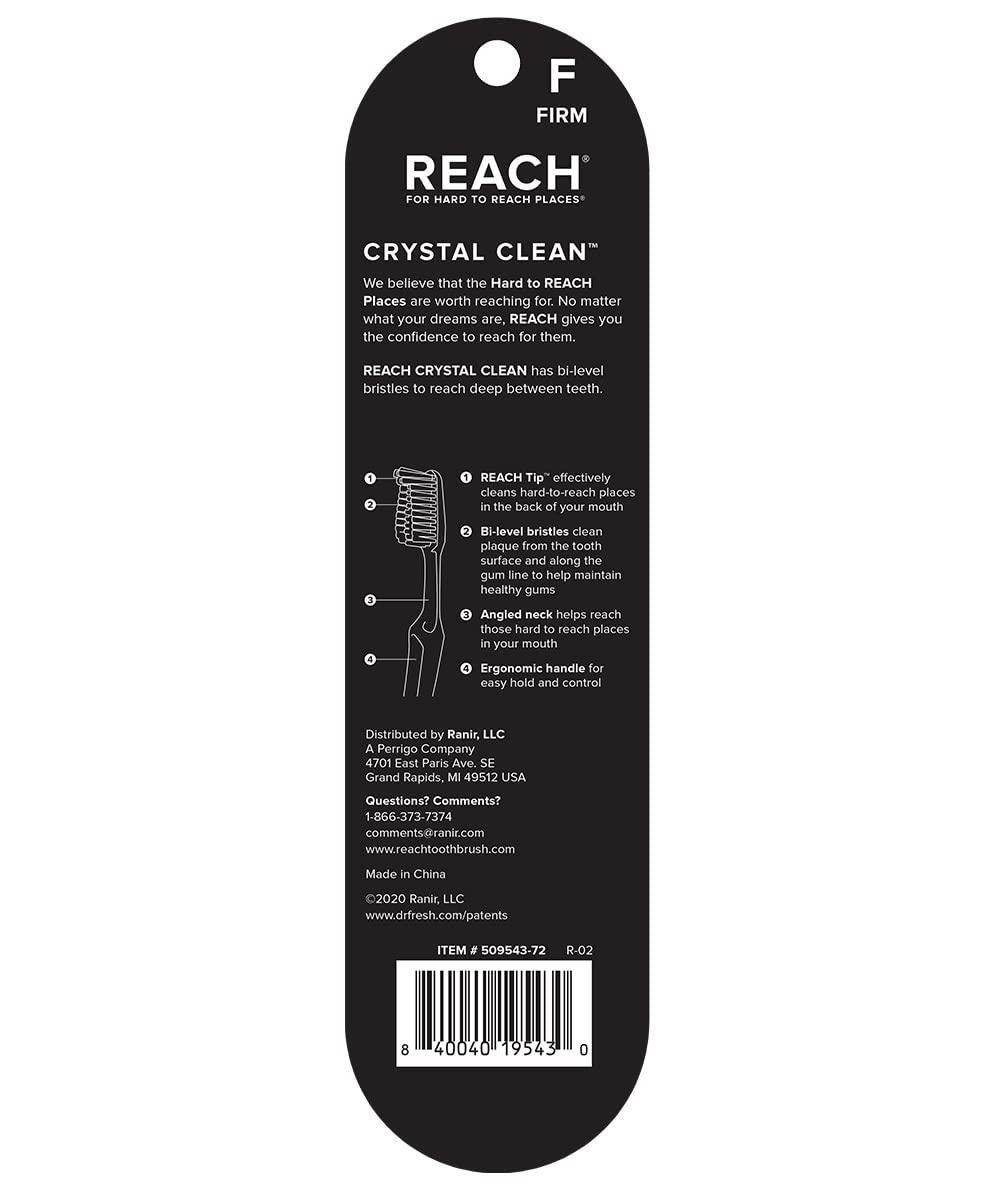 Discover the authentic Reach Crystal Clean Firm Adult Toothbrush, 1 Each, Colors May Vary, 6 Piece by REACH, part of our Manual Toothbrushes collection. Imported directly from the USA and sourced from trusted suppliers, this product is 100% authentic and delivered anywhere in India at the best price.