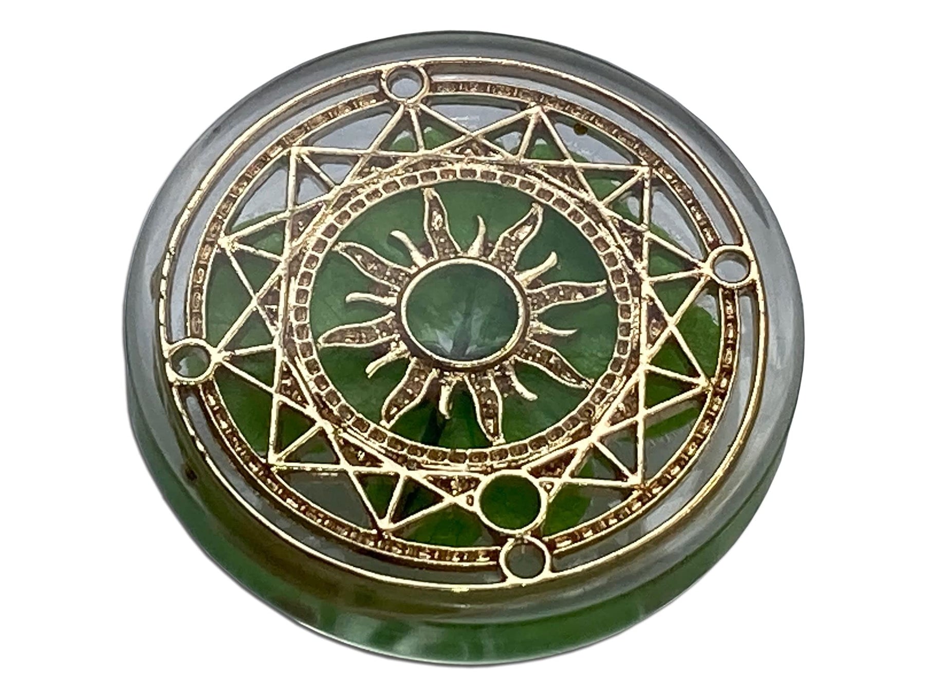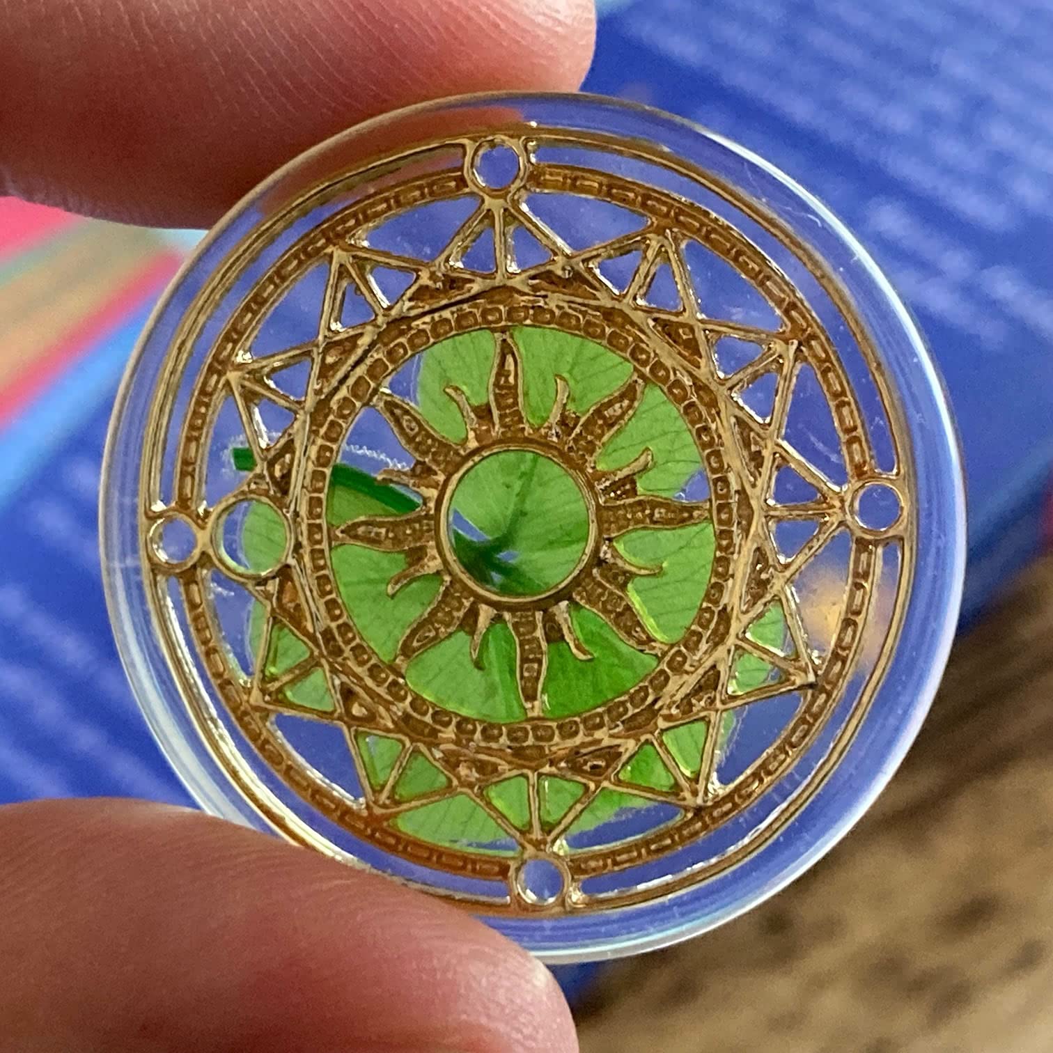- Original Hanging Ornaments – Real Four Leaf Clover Good Luck Pocket Token, Preserved, 1.25”, Including Metal Ornament (Magic Circle of The Sun) by KIN-HEBI