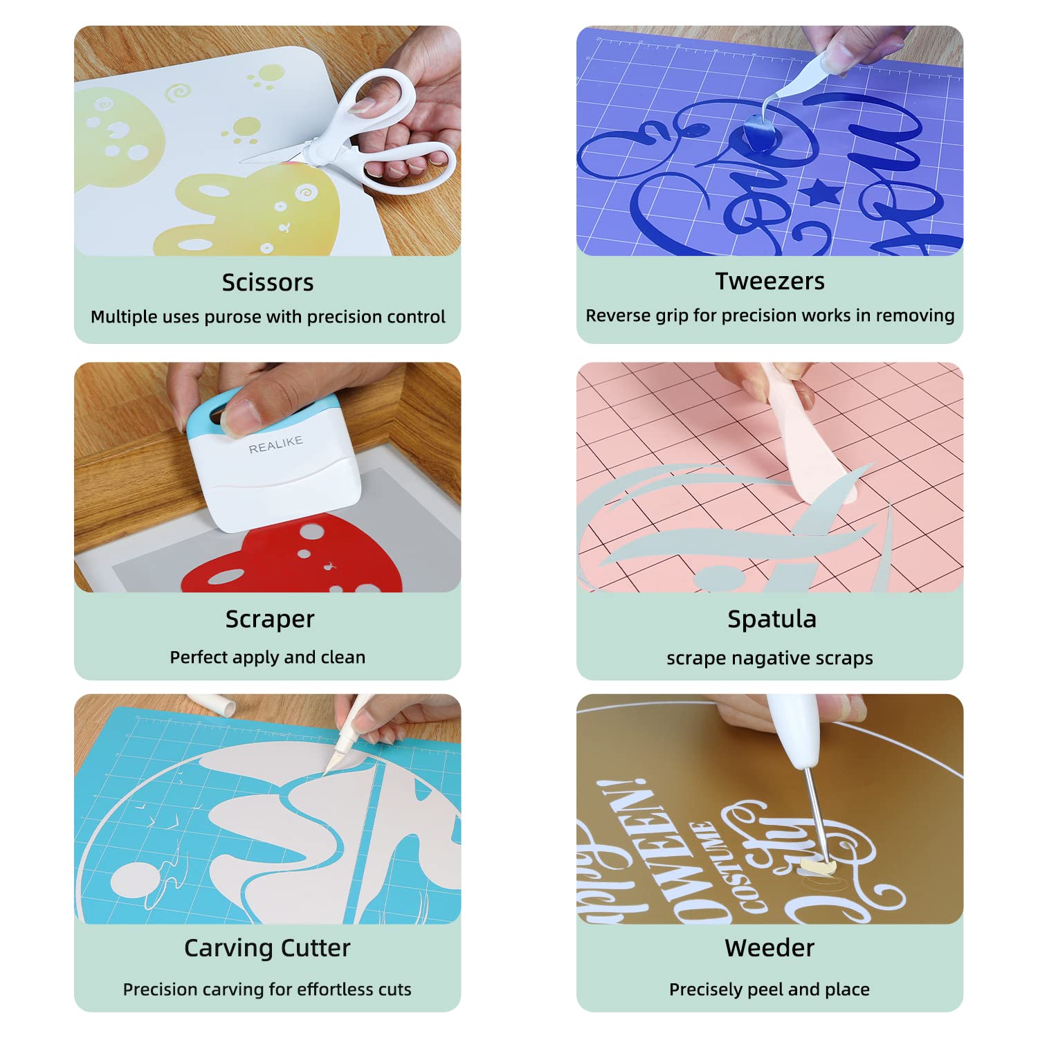 - Original Scrapbooking Tools – Craft Weeding Tools for Vinyl Cardstock Crafting Basic Tool Kit Set for Cricut/Silhouette/Siser HTV/Oracal Vinyl by REALIKE