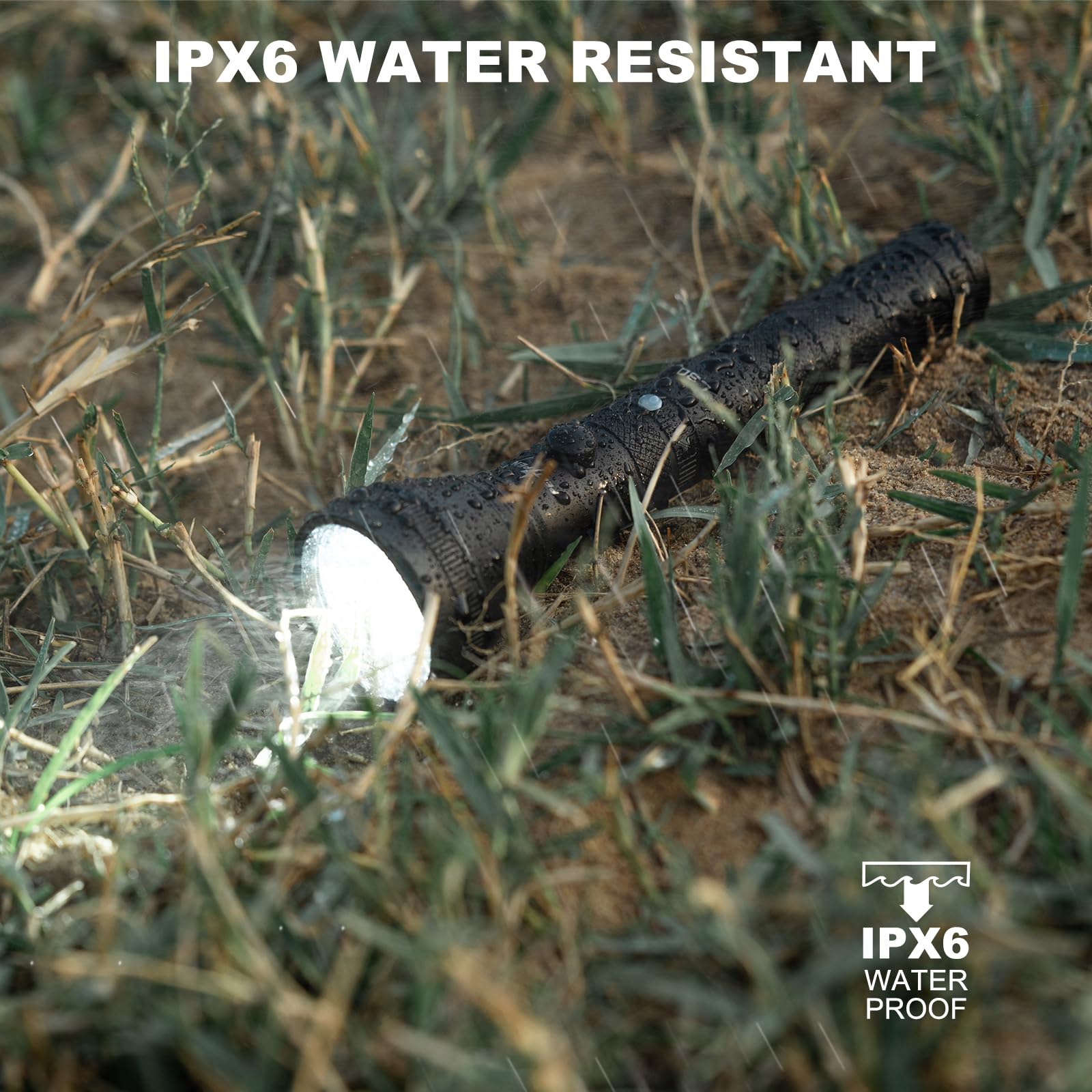 - COMPACT & DURABLEMeasuring just 80 inches long, 19.5 inches wide, and weighing a mere 3.8oz, this flashlight is incredibly portable. Its waterproof body boasts an IPX6 rating, withstanding impact, dust, and water (including a 7-foot drop test and 1-hour submersion). Reliably functions even in harsh environments like sandstorms, heavy rain, and snowstorms. Keep this essential tool in your power outage emergency kit and RV supplies, It might be the right choice for your emergency situation!