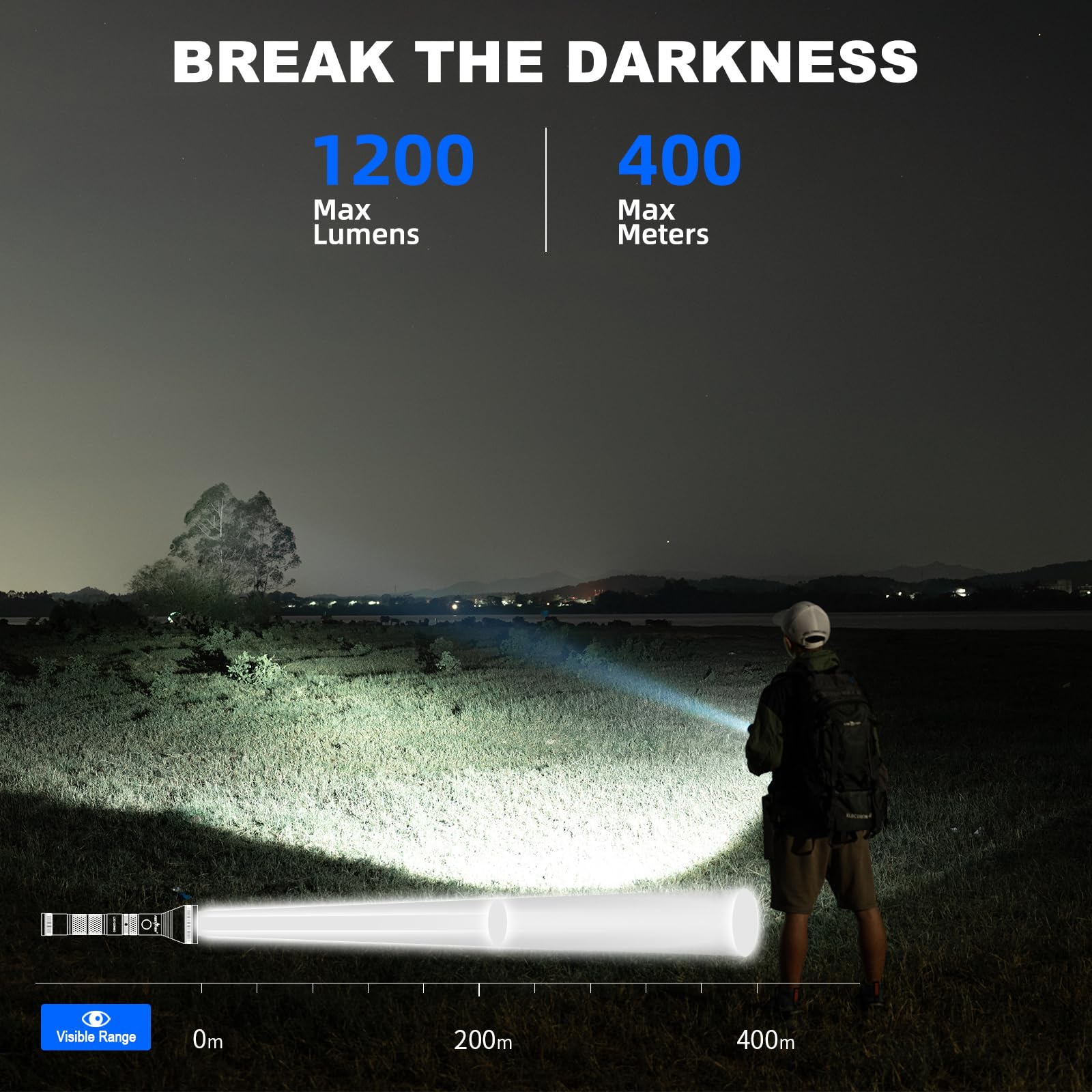 - ULTRA BRIGHT & ENERGY-SAVING The PEETPEN L30 high lumens flashlight with its upgraded P8 LED technology, offering 3 times the brightness of standard T6 LED handheld lights and over 10 times that of incandescent bulbs, 1200 high lumens is enough power so you can use it without worrying about the brightness . With a unique condensing design, it delivers an impressive maximum beam distance of 1312FT (400M) – equivalent to 3.5 American football fields! Ideal for any survival kit or emergency situation.