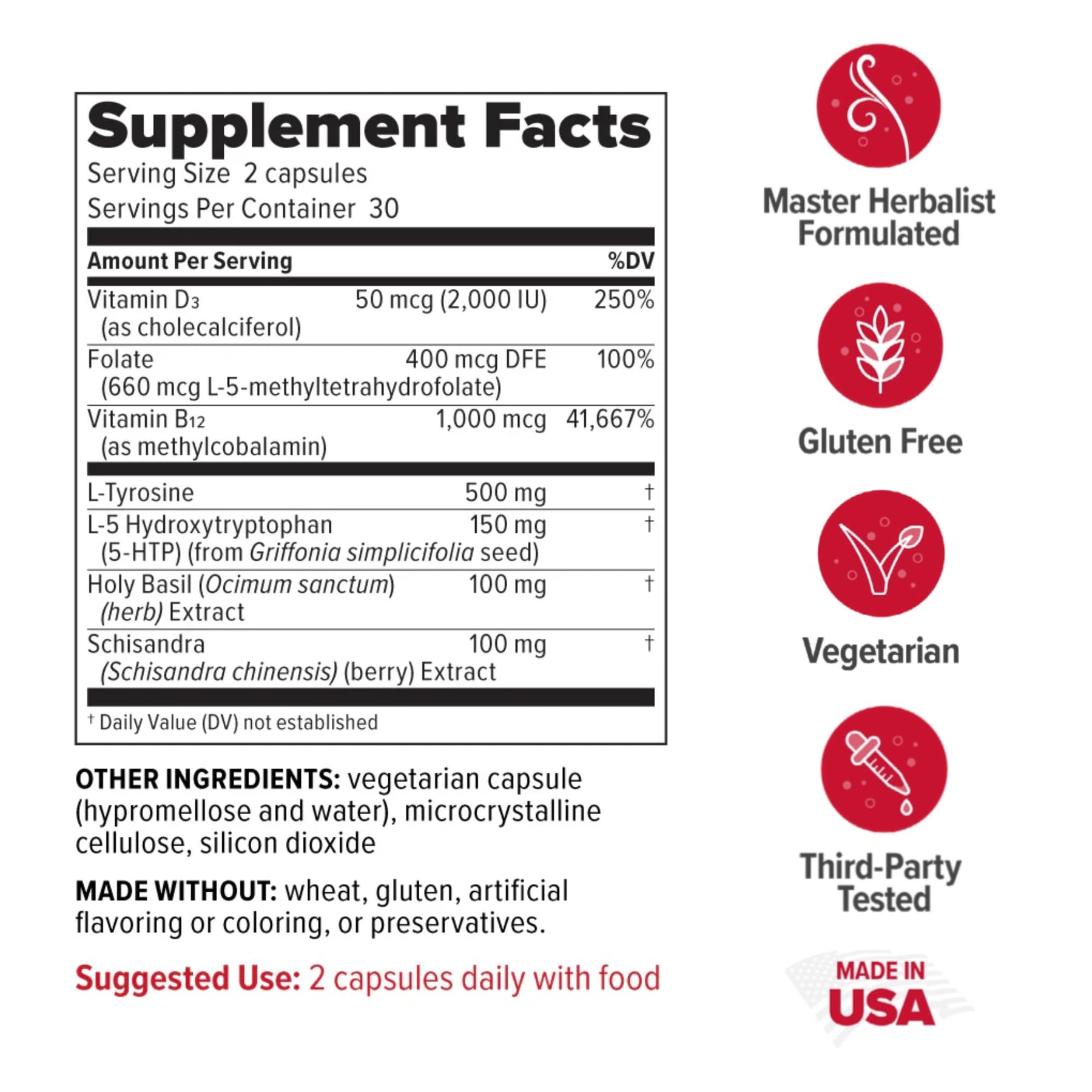 - Features Trusted Botanicals: Gentle yet effective blend of 5-HTP, L-Tyrosine, and holy basil, known for their roles in mood support.