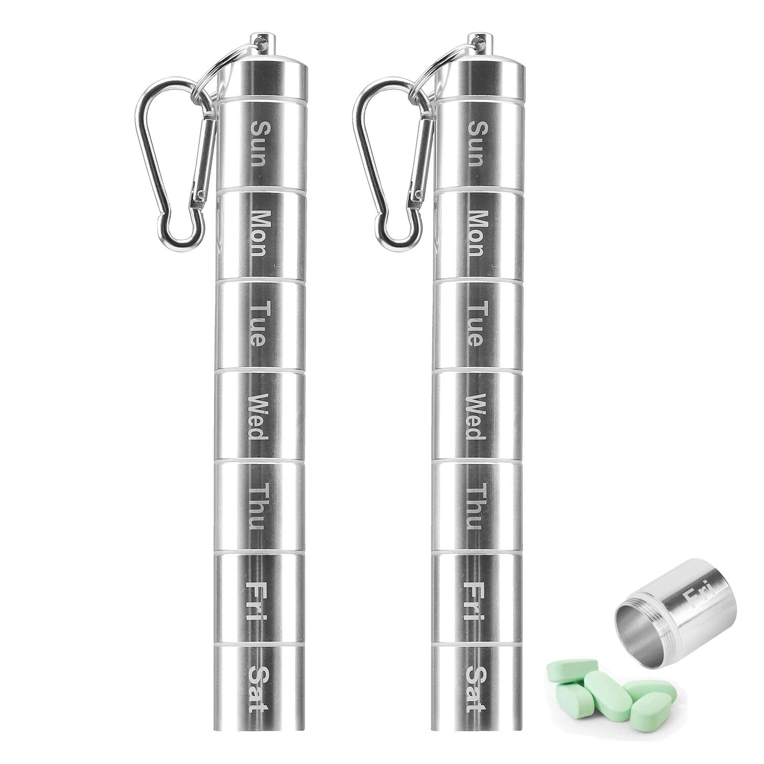- Original Pill Organisers – Weekly Pill Fob, Aluminum Alloy Waterproof Pill Cases Box Dispenser Travel Pill Box 7 Days Printed Pill Holer Container Medicine Organizer with Key Chian & Buckle for Travel Camping (2) by Rely2016
