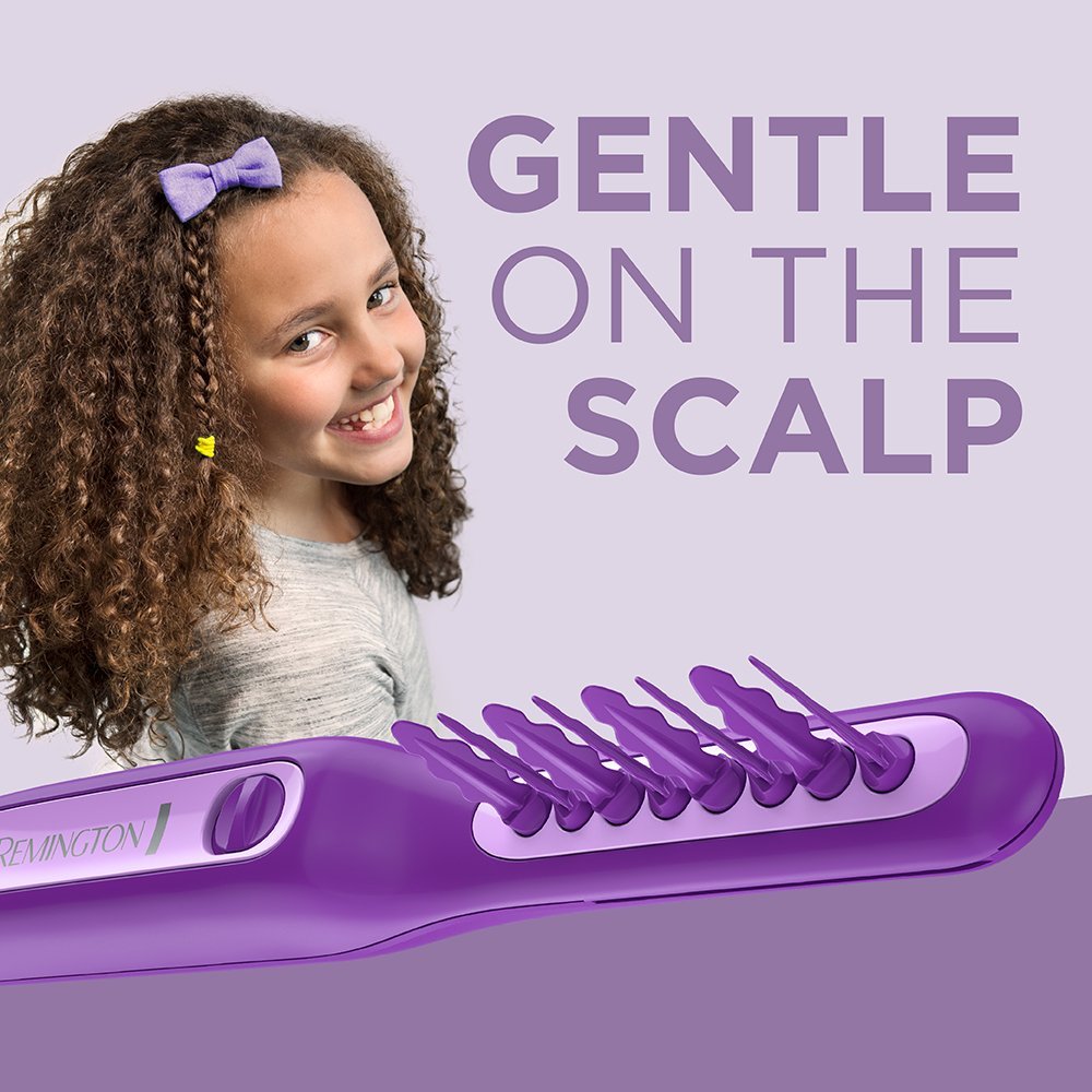 - Gentle on the Scalp: The soft tip teeth protect the scalp while preventing pulling or tugging of hair; Cordless: Enjoy cordless convenience with this battery powered brush (two AA batteries included); On/Off Switch: Easy operation so kids can detangle on their own