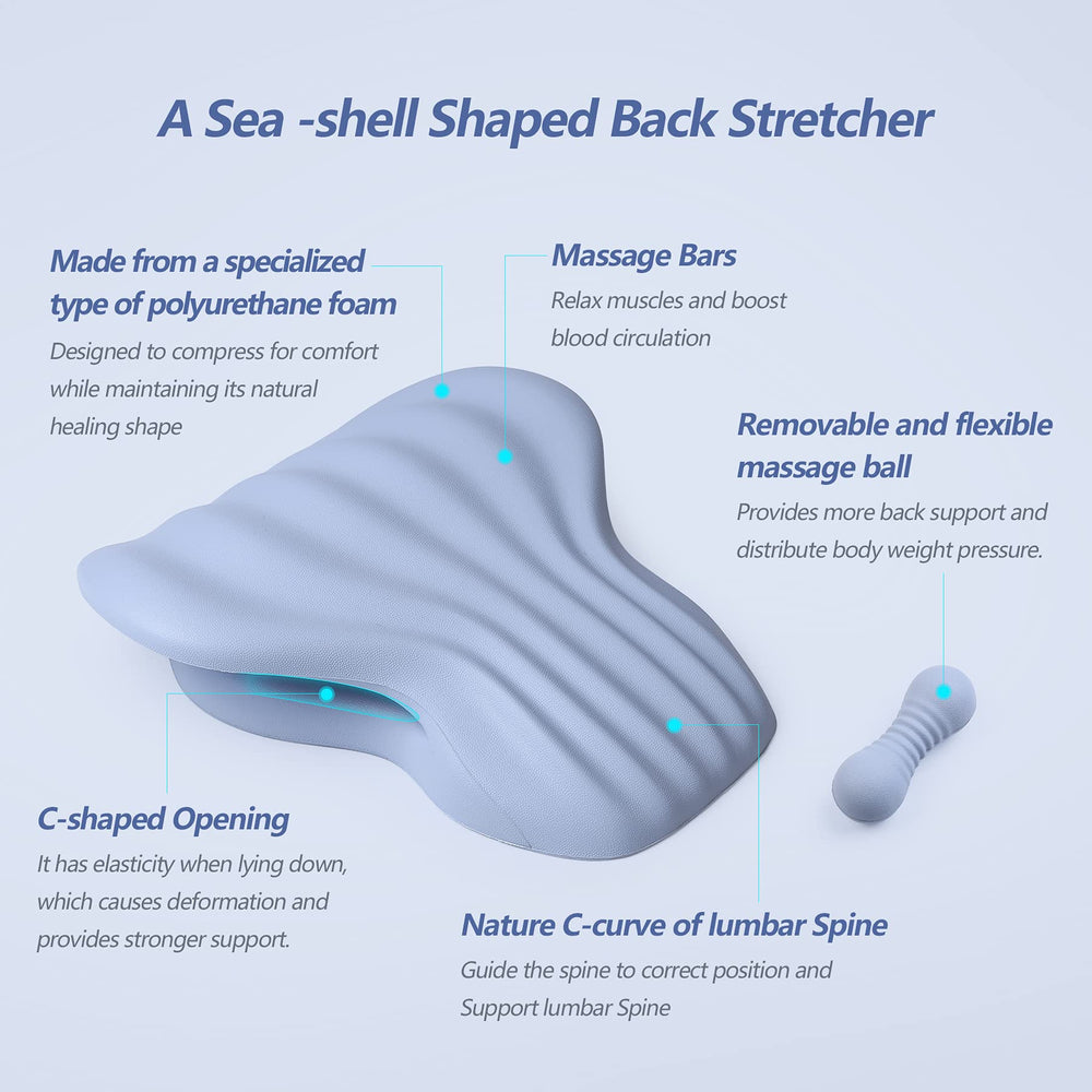 - Lower Back Stretcher utilizes a Sea-shell shaped design to completely support the lower back as well as mid back permitting complete comfort involving back muscle groups.