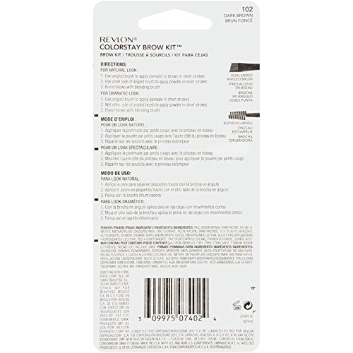 - Original Eyebrow Colors – Revlon ColorStay Brow Kit, Includes Longwear Brow Powder, Clear Pomade, Dual-Ended Angled Tip Eyebrow Brush & Spoolie Brush, Dark Brown (102), 0.08 oz by REVLON