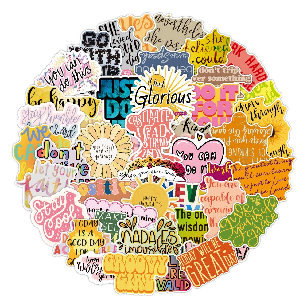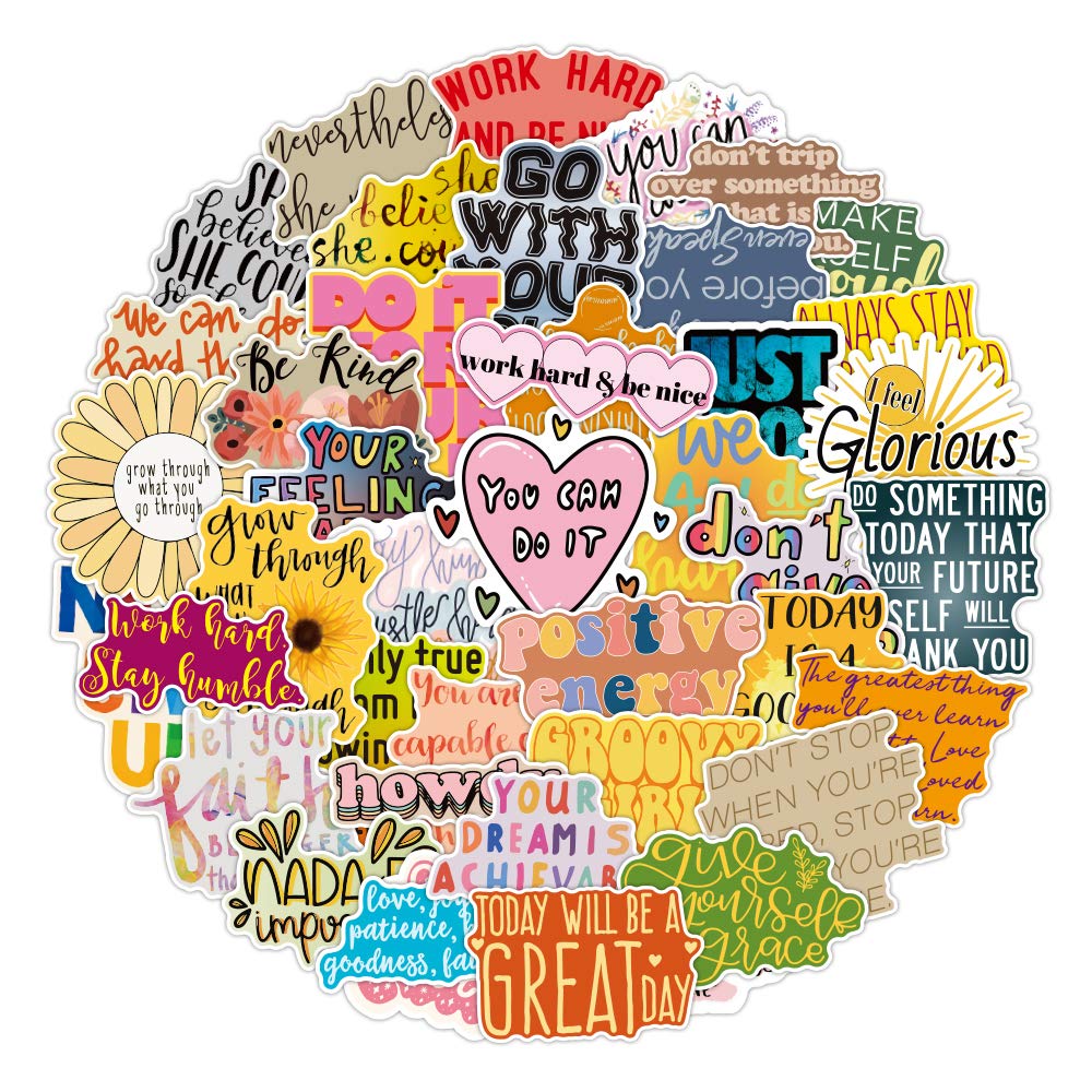 50 different motivational stickers in each pack. Assorted, large bundle of stickers, enough for you to choose from.