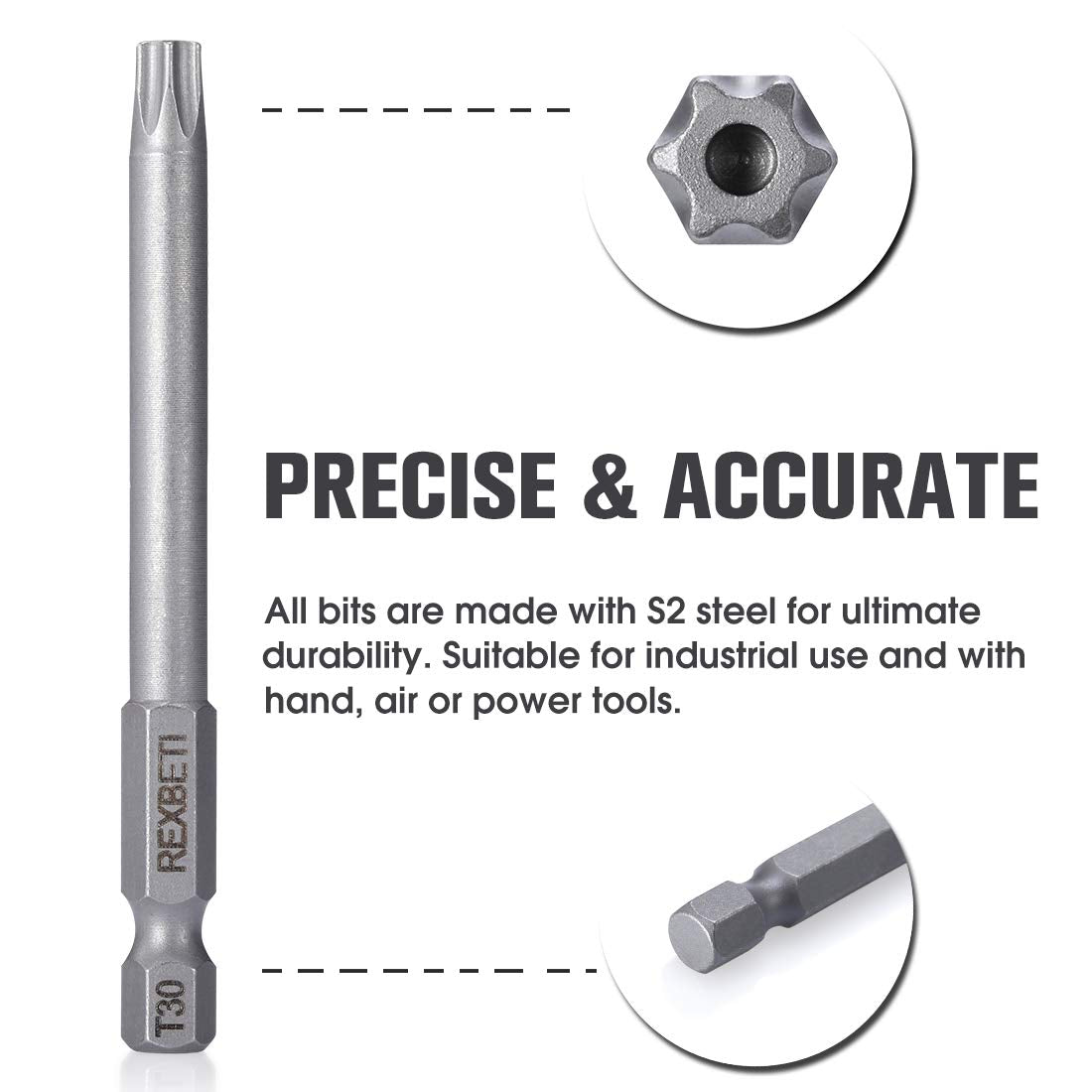 - Original Power Tool Parts & Accessories – 12 Piece Torx Head Screwdriver Bit Set, 1/4 Inch Hex Shank S2 Steel Magnetic 3 Inch Long Drill Bits, T5-T40 (Torx Head) by REXBETI