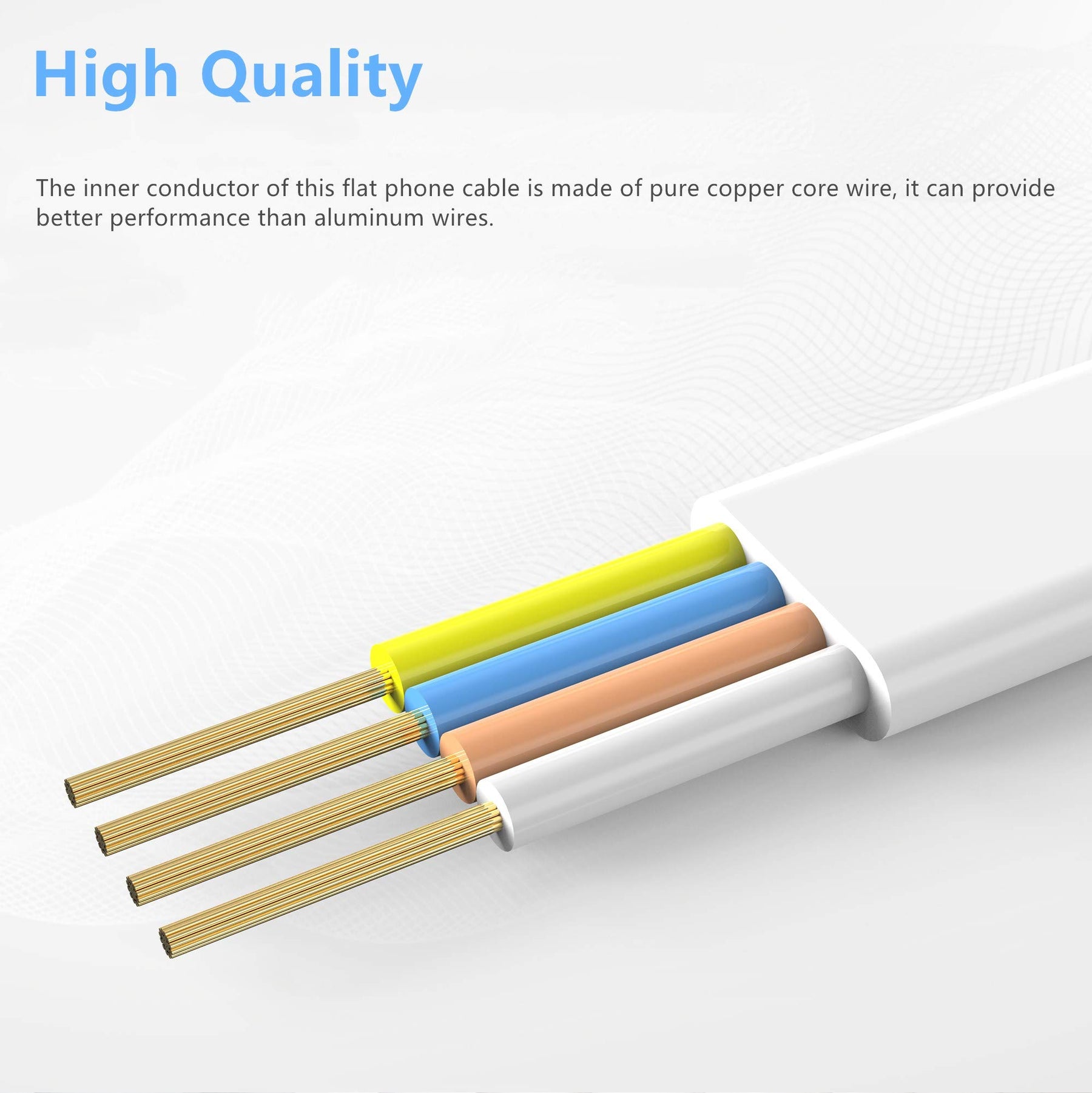 - The inner conductor of this flat phone cable is made of pure copper core wire, it can provide better performance than aluminum wires. Gold plated contact provides better data transmission and higher signal strength.