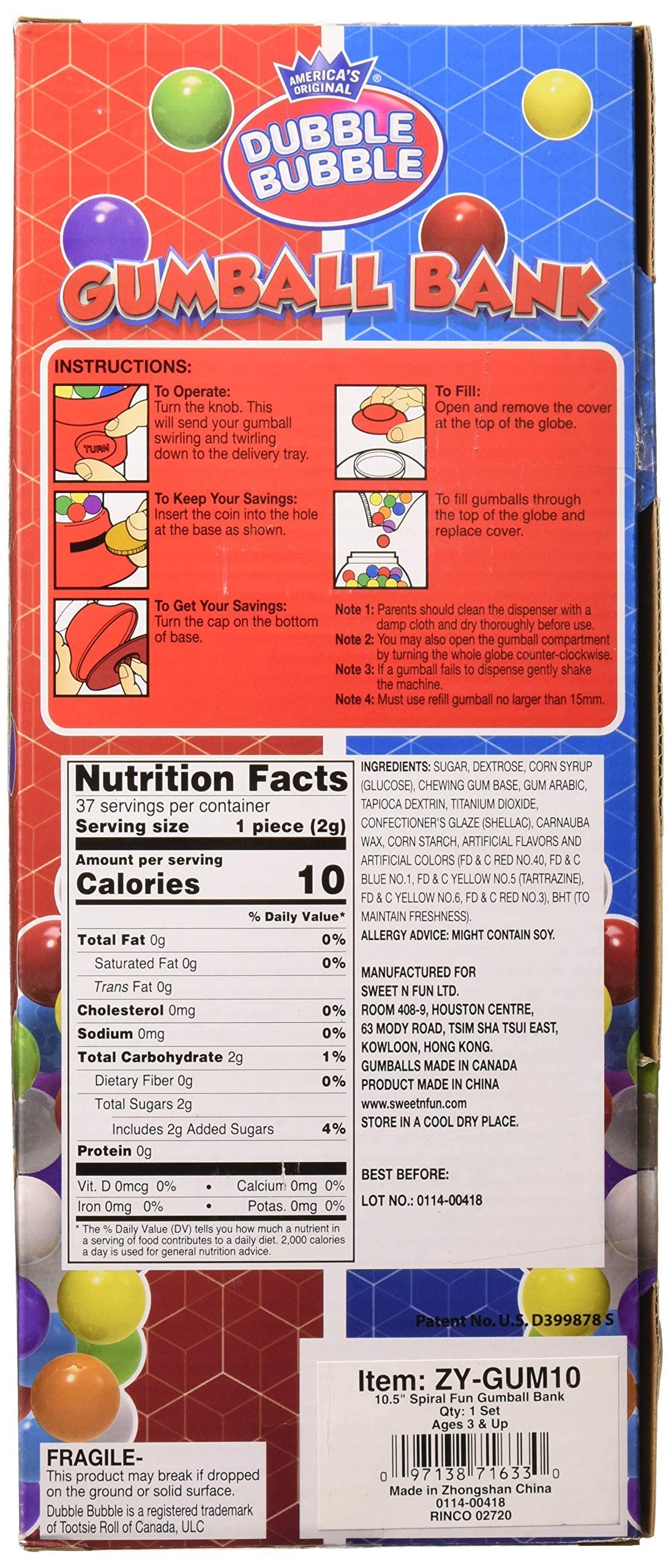 - Fun - With a 10.5-inch gumball bank, the fun never ends! Watch colorful orbs swirl, pick the perfect flavor, then get a sweet reward. doubles as a coin bank, as each deposit promises another chance to indulge in sugary delight.
