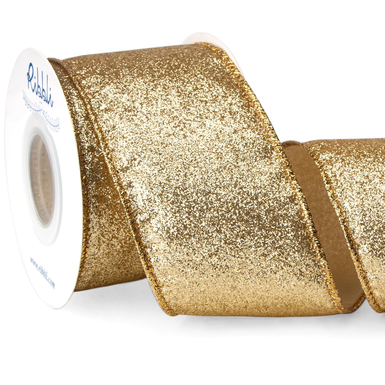 - Original Gift Wrap Ribbons – Gold Glitter Wired Ribbon with Gold Metallic Edge,Christmas Ribbon for Wreath, Tree Decoration, Home Decor, 2-1/2 Inch x 10 Yards by Ribbli