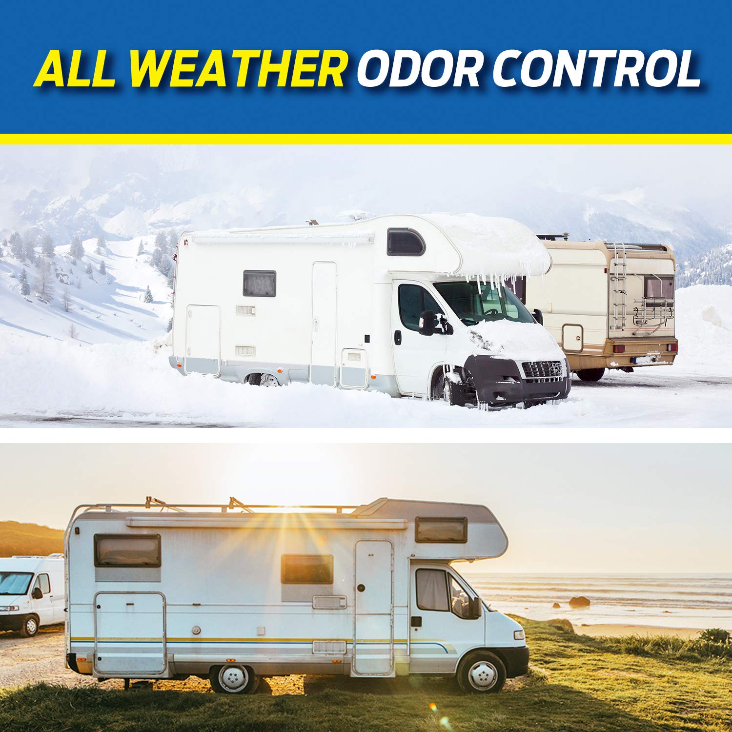 - Combats odors & breaks down waste in RV, marine and portable toilet holding tanks.