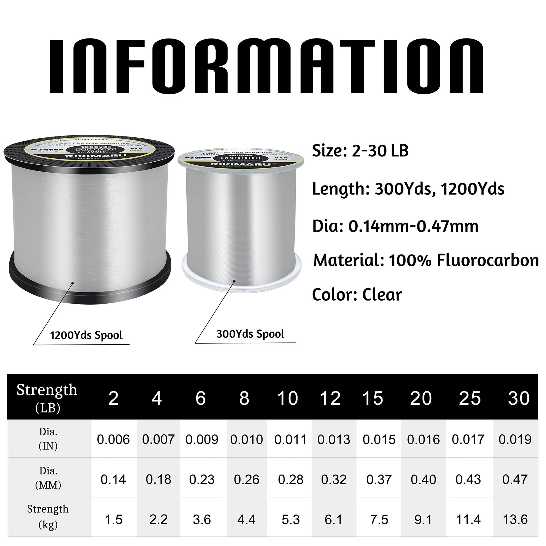 - Original Fluorocarbon Line – Fluoro Fishing Line, 100% Fluorocarbon Coated Fishing Line (Clear, 20LB/0.40mm/300Yds) by RIKIMARU