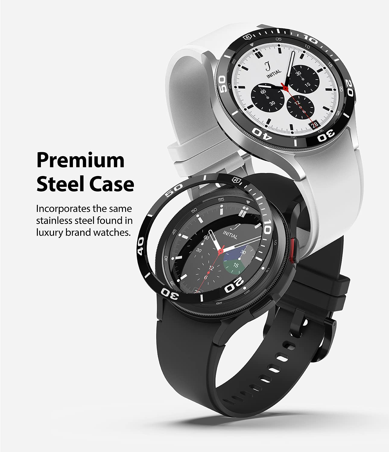 - Original Smartwatch Screen Protectors – Bezel Styling Compatible with Samsung Galaxy Watch 4 Classic 46mm Adhesive Frame Ring Cover Anti Scratch [Stainless Steel] Protection for Galaxy Watch4 Classic 46mm - Black [46-02] by Ringke