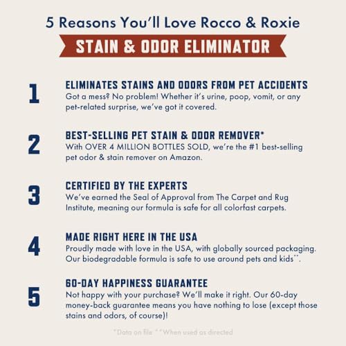 - Original Odor Removers – Rocco & Roxie Supply Co. Stain & Odor Eliminator for Strong Odor - Enzyme Pet Odor Eliminator for Home - Carpet Stain Remover for Cats & Dog Pee - Enzymatic Cat Urine Destroyer - Carpet Cleaner Spray by Rocco & Roxie Supply Co.