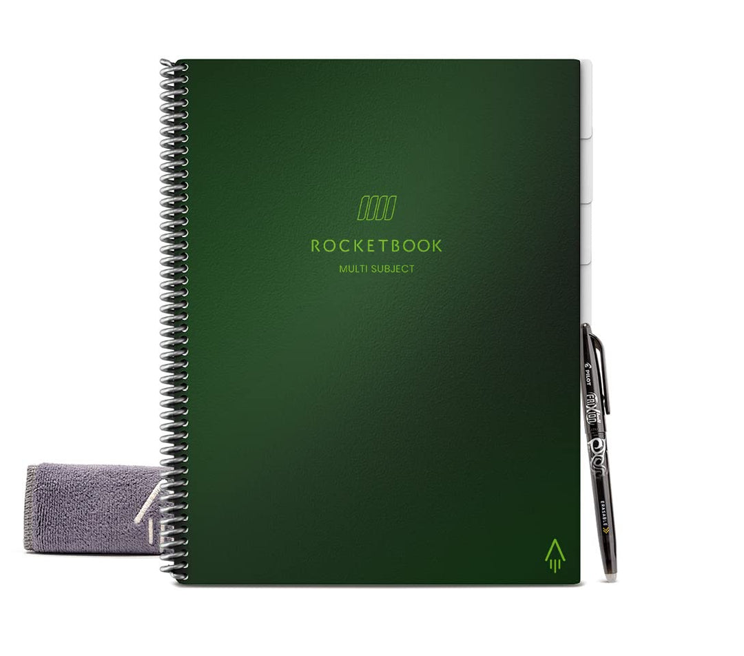 - Original Subject Notebooks – Multi-Subject Smart Scannable Notebook with Dividers, Lined Reusable with 1 Pilot Frixion Pen & 1 Microfiber Cloth, Green, Letter Size (8.5 x 11) by Rocketbook