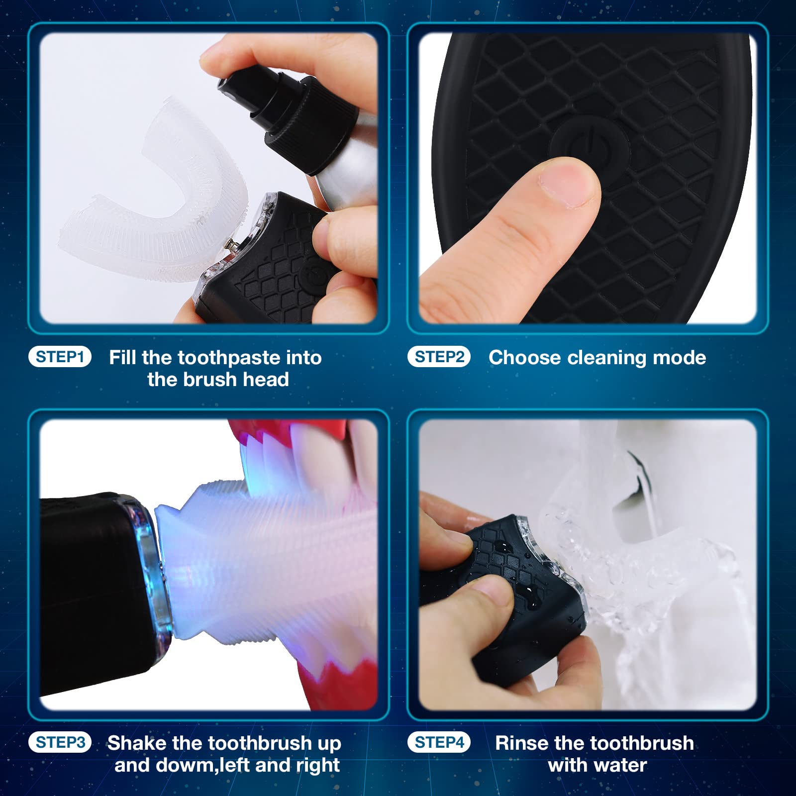 - U-Shape Design: this U-shaped electric toothbrush for adults, fits adults' mouth well, 360 degree deeply cleaning whole mouth and better protect gums; With high-frequency sound wave vibration, it can quickly and deeply clean the surface and interior of teeth in all directions, protect your dental health