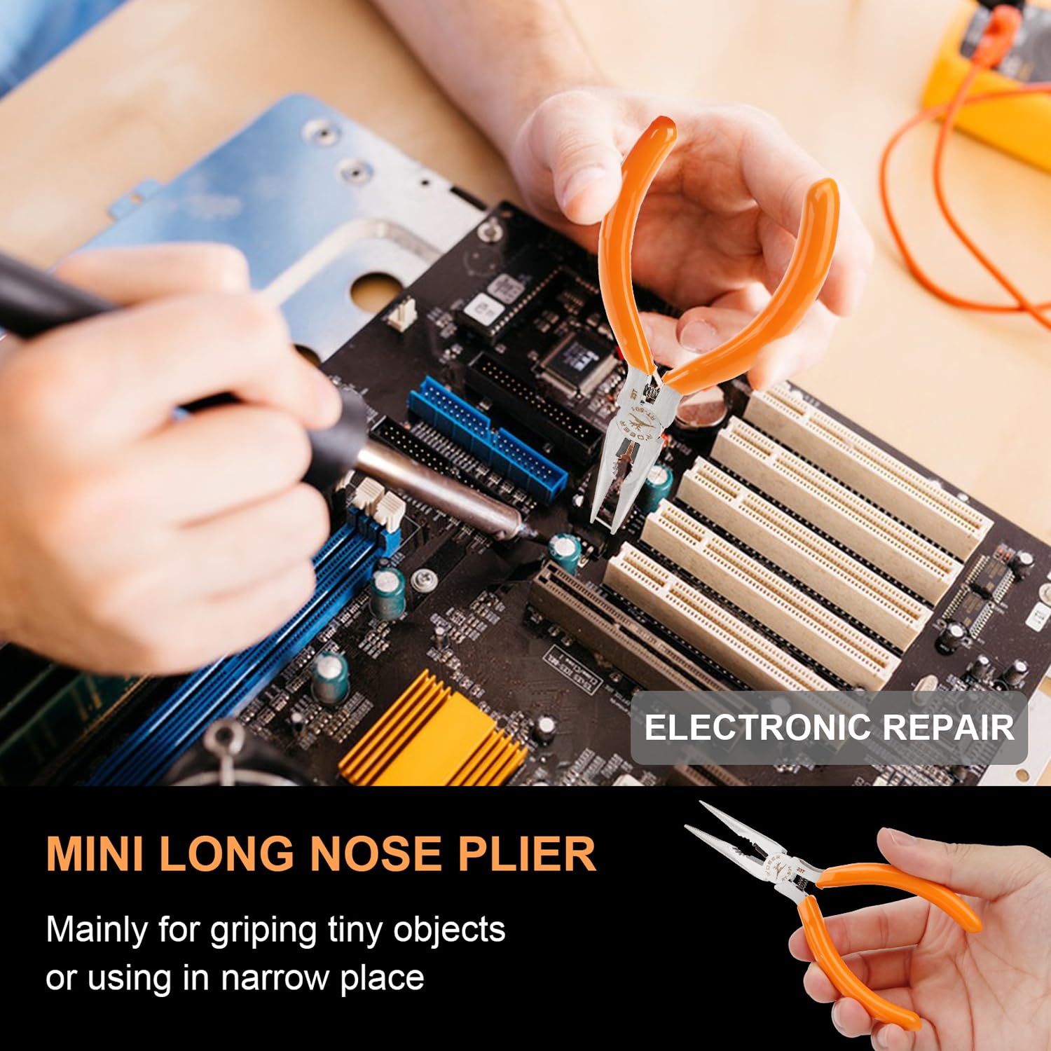 - Multi-Functionality Long nose pliers with fine tips for working in hard-to-reach areas, suitable for plyers, hobbyists, craftsmen, jewelry makers, artisans, electricians, for gripping small parts, bending wires, electronics repair, grabbing small objects, etc.