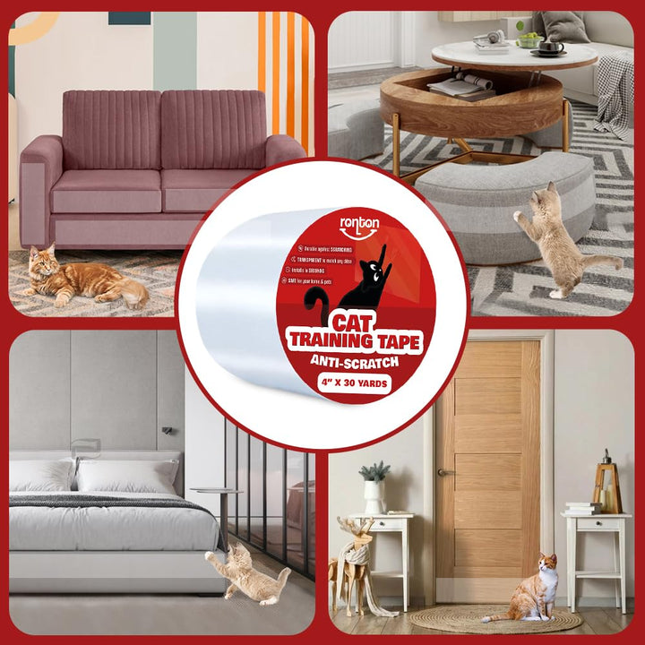 - Original Scratching Pads – Anti Cat Scratch Deterrent Tape, 4 x 30 Yards Roll Anti Cat Scratch for Furniture, 100% Transparent - Double Sided Cat Training Tape| Couch, Door, Furniture Protector by Ronton