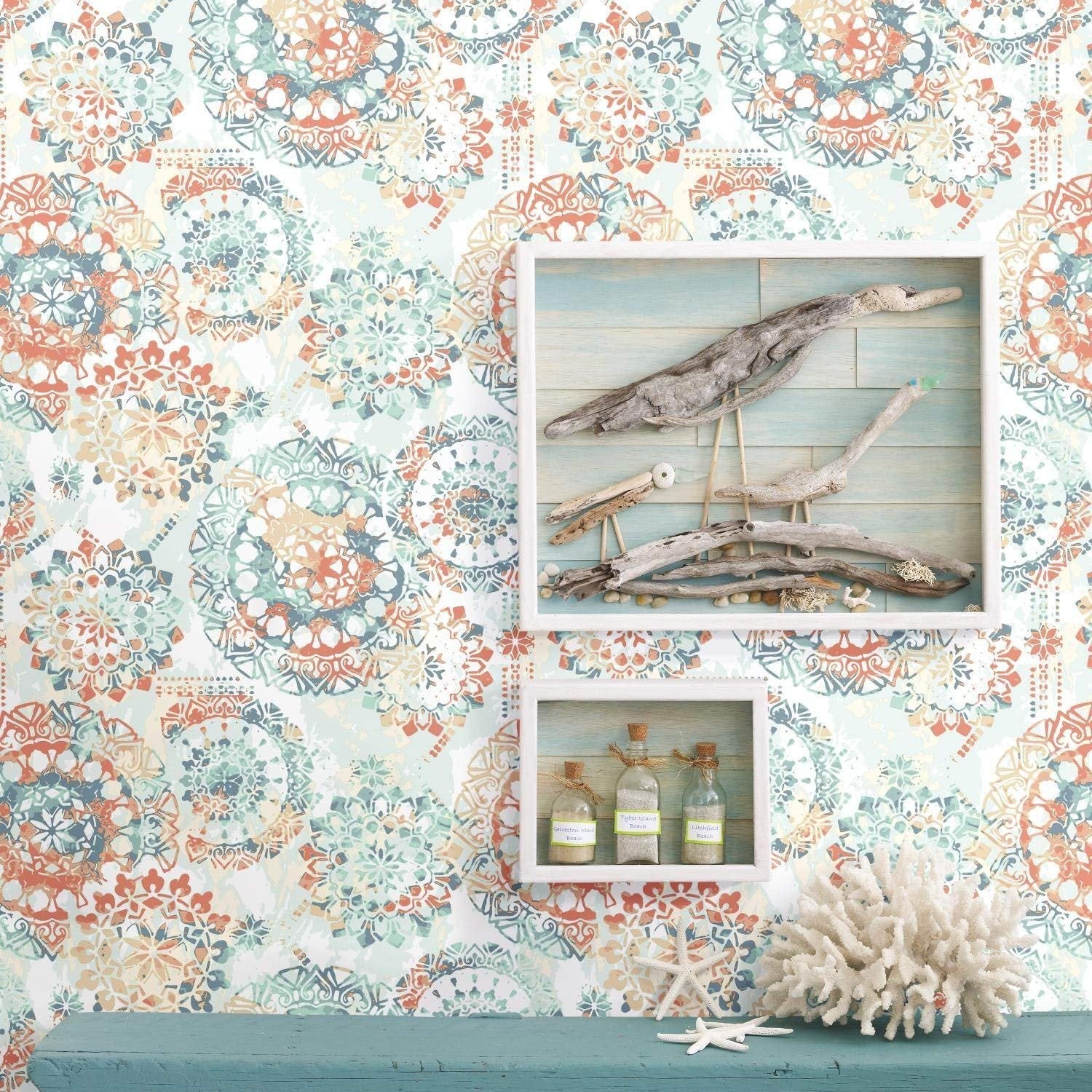 - Original Wallpaper – RMK9126WP Orange and Blue Boho Medallion Peel and Stick Wallpaper, Coral, 20.5 x 16.5 feet by RoomMates