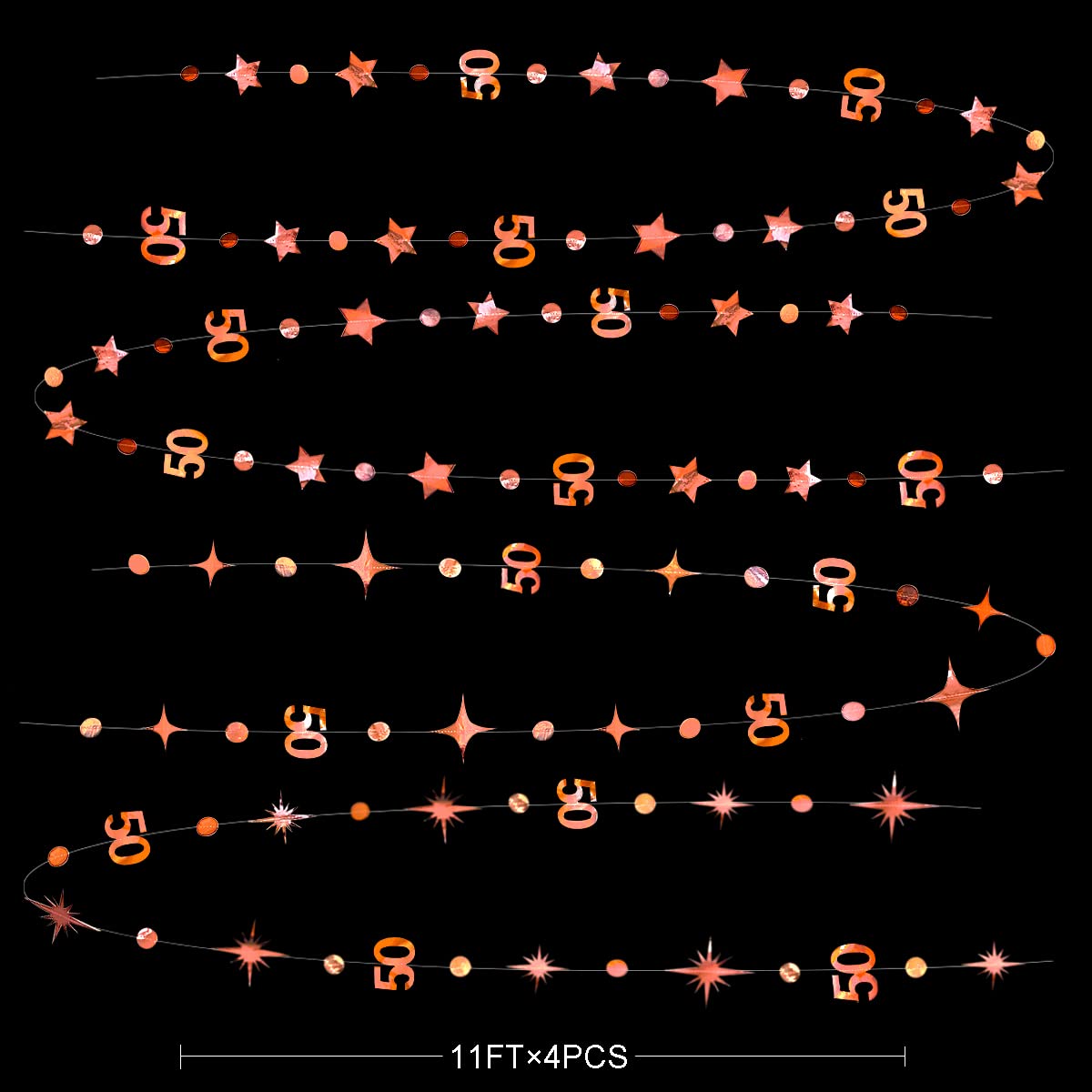 - Adorable party decor: our rose gold number 50 circle dot twinkle star garland kit is perfct for her/him 50th birthday party, 50th birthday decorations, 50th birthday party supplies, beers and cheers to 50 years party, 50 and fabulous birthday decorations for women, im 50 bitchs party, dirty 50 birthday decorations, 50th anniversary, wedding, bridal shower, birthday, engagement, barbecue, home, christenings, fetes, etc.