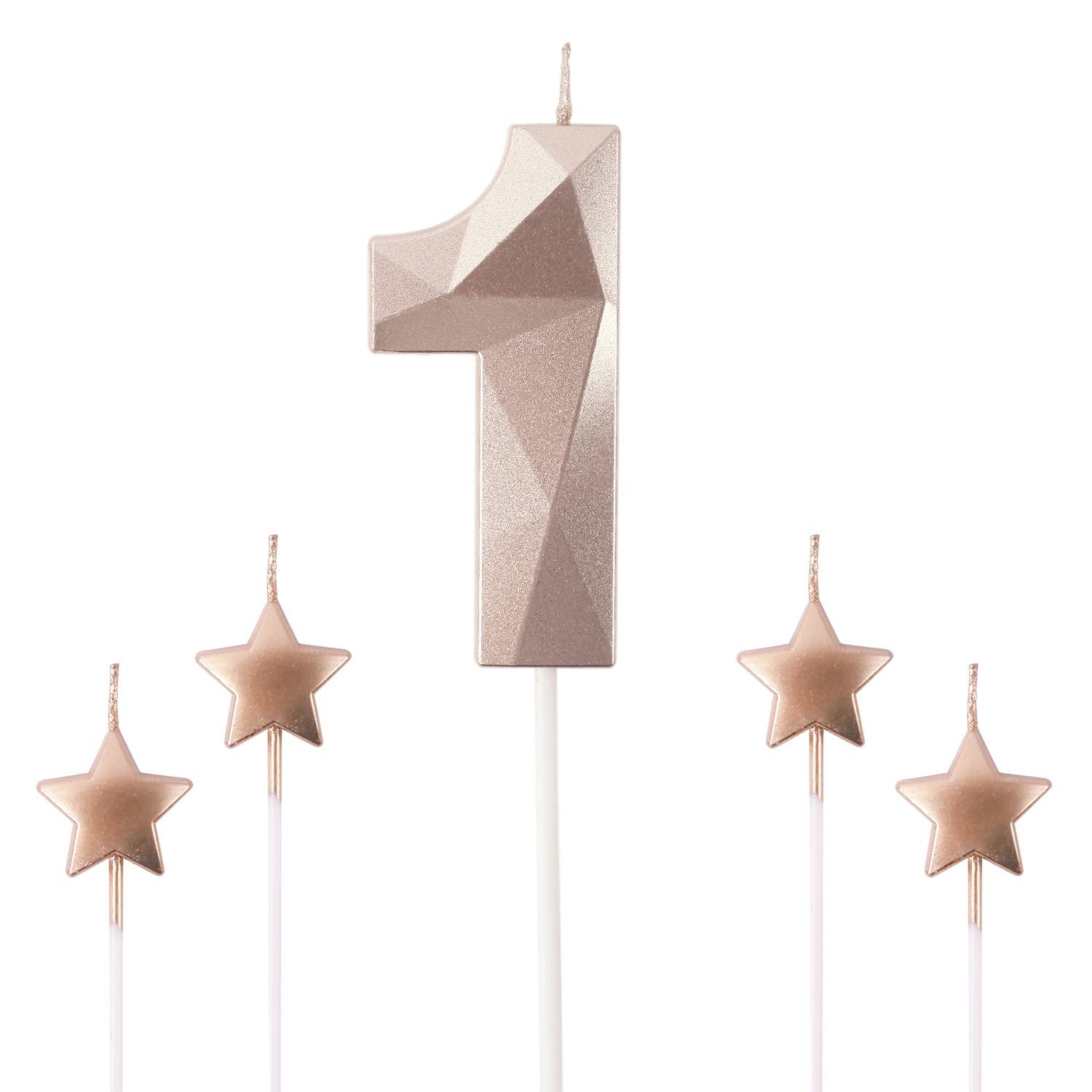 - Original Birthday Candles – Rose Gold Number 1 Birthday Candles and Star Birthday Candles 2.76 inch Birthday Cake Candles 3D Diamond Shaped Candles are Suitable for Birthday Parties and Anniversary Cake Decorations Candles by NIJGNSUG