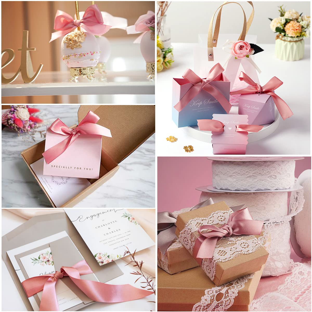 - Wide Range of Uses - These single face ribbons are the best choice for crafts. Ribbon for crafts easy to bend and twist. Satin ribbons are perfect for gift packaging, wreath, card making, balloon, sewing, hair bows, bridal bouquet, wedding invitation cards and favors, scrapbooking. DIY ribbons into beautiful hair ties and hair accessories.