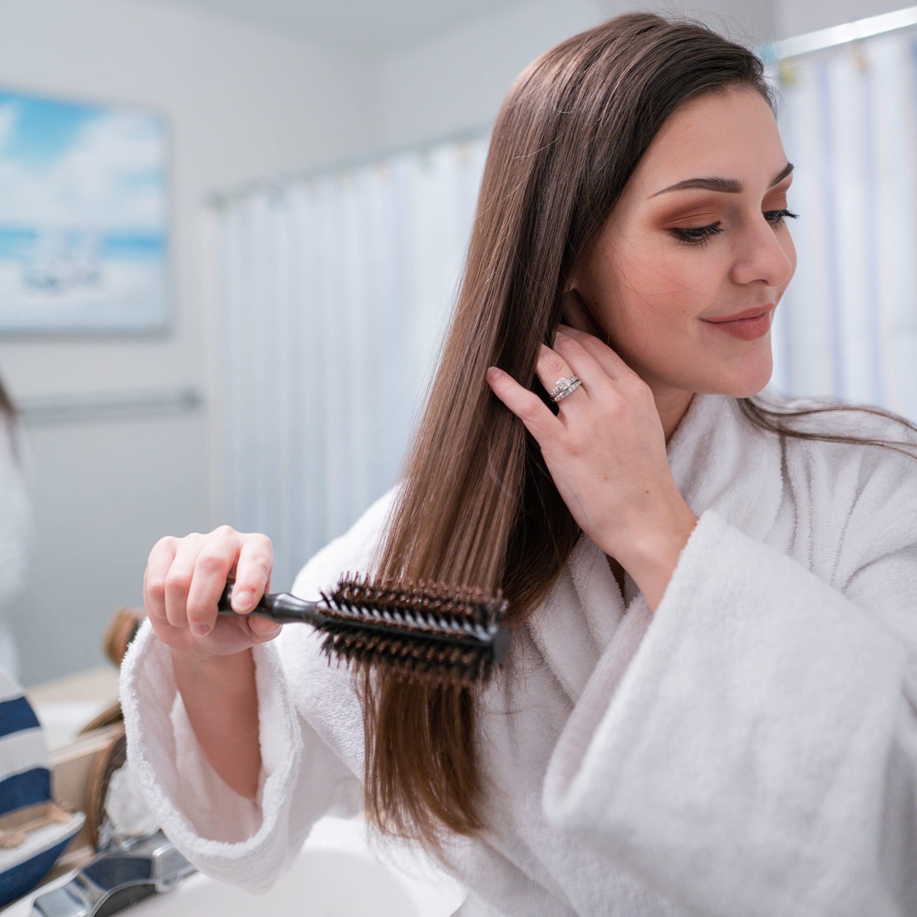 - ERGONOMIC WOODEN HANDLE: Crafted with a comfortable, ergonomic wooden handle for easy grip and control during styling, reducing hand fatigue for a pleasant brushing experience.