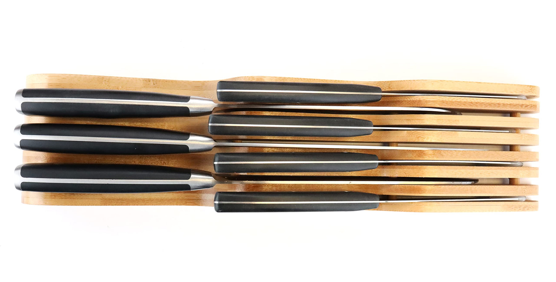 FITS MOST STANDARD DRAWERS – say goodbye to knives shooting out of your drawer or jamming it. This in-drawer knife holder will fit effortlessly into your drawer and organize a wide range of knives.