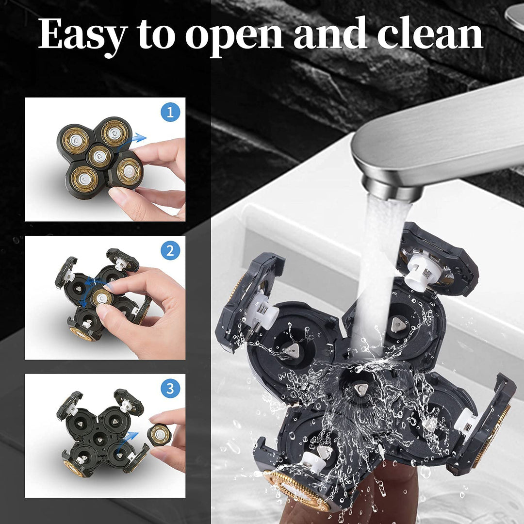 - Waterproof Head: The head shaver blade for men allows you to clean after shaving. You can open the razor head and clean the inside, which can reduce the residual beard residue in the razors head and extend the service life of the shaver head.