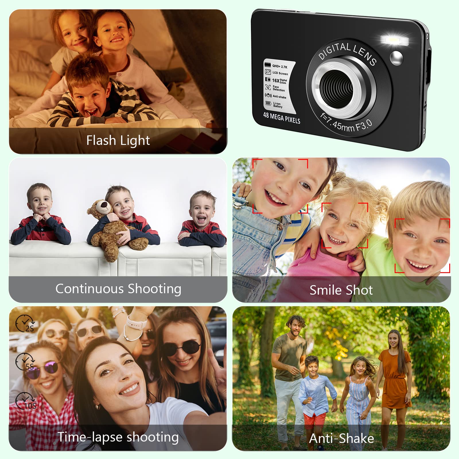 - Lightweight compact digital cameraLightweight design is easy to carry around, you can put this portable camera directly in your pocket or backpack without making you feel the weight of the camera. It's perfect for beginners, teens, seniors, and children, as well as gifts for birthdays, Christmas, Thanksgiving, and other occasions