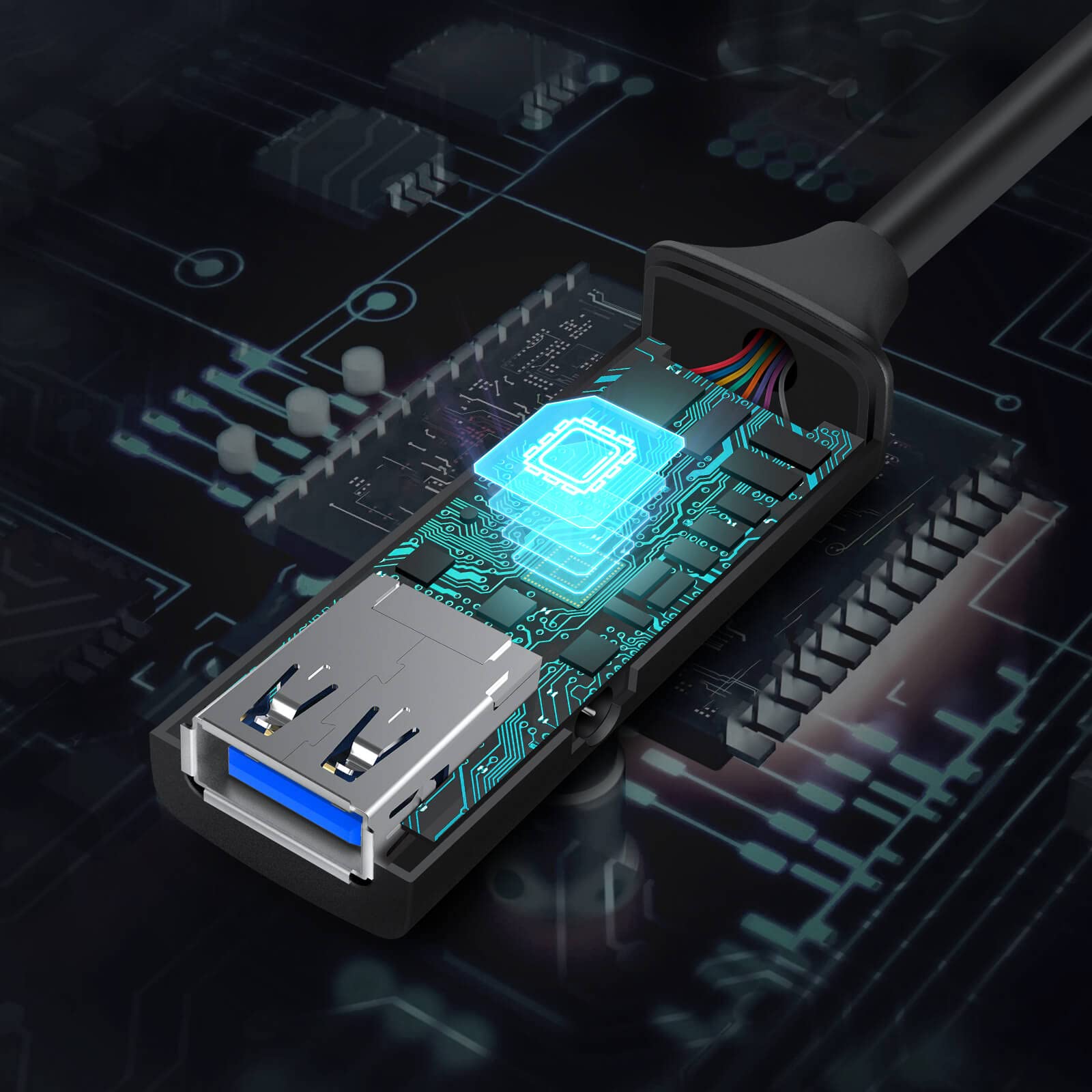 USB booster cable built-in Signal Booster Chips, Incidental DC 5V 2A power supply, to ensure that performance SuperSpeed USB 3.0 extension cable better than normal USB for more stable data transfer.