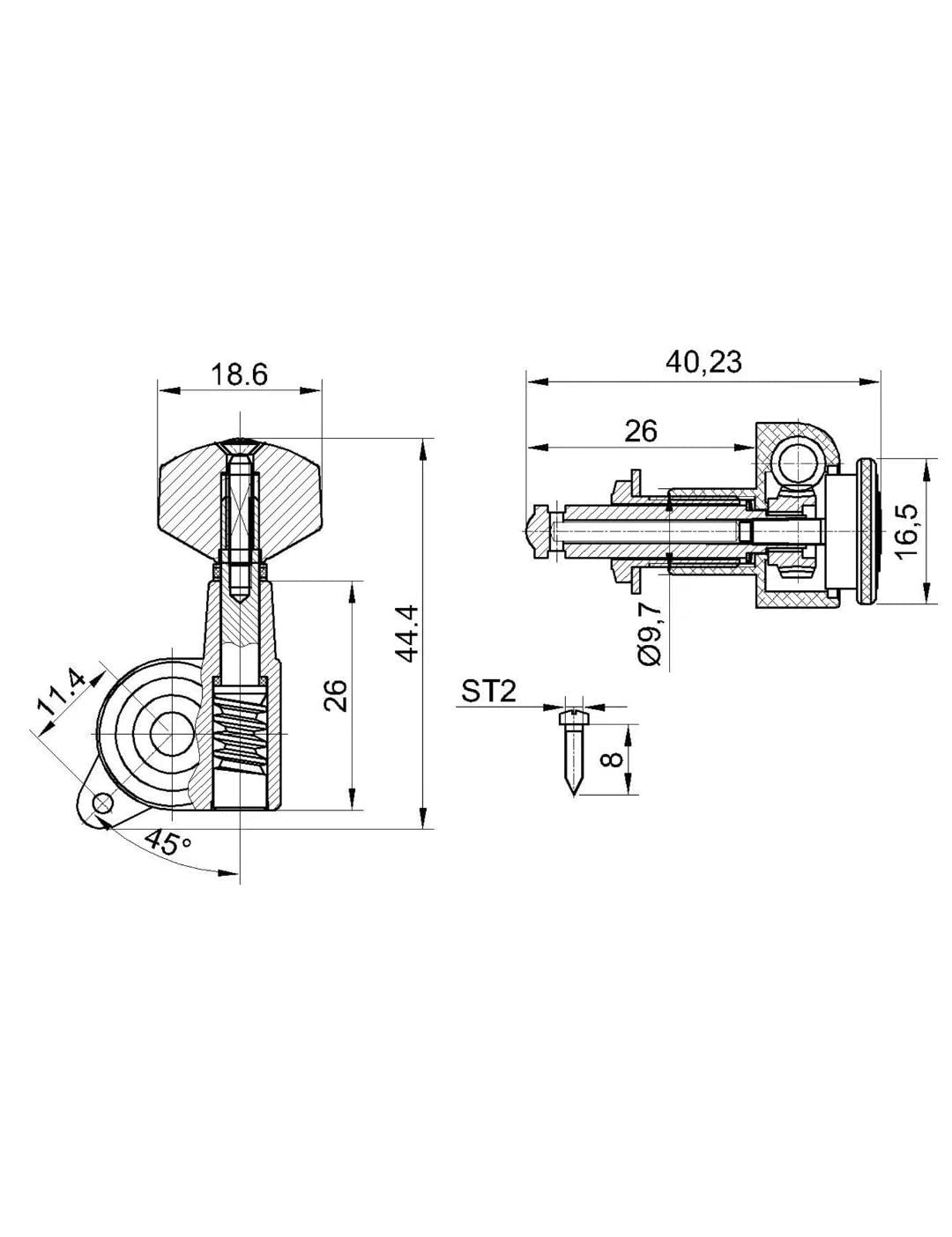 - Set of 6pcs quality black locking machine heads for steel string (electric or acoustic) guitars. These guitar tuning pegs is for modern 3/8(10mm) tuner holes guitar with 45 degree fixing tag.