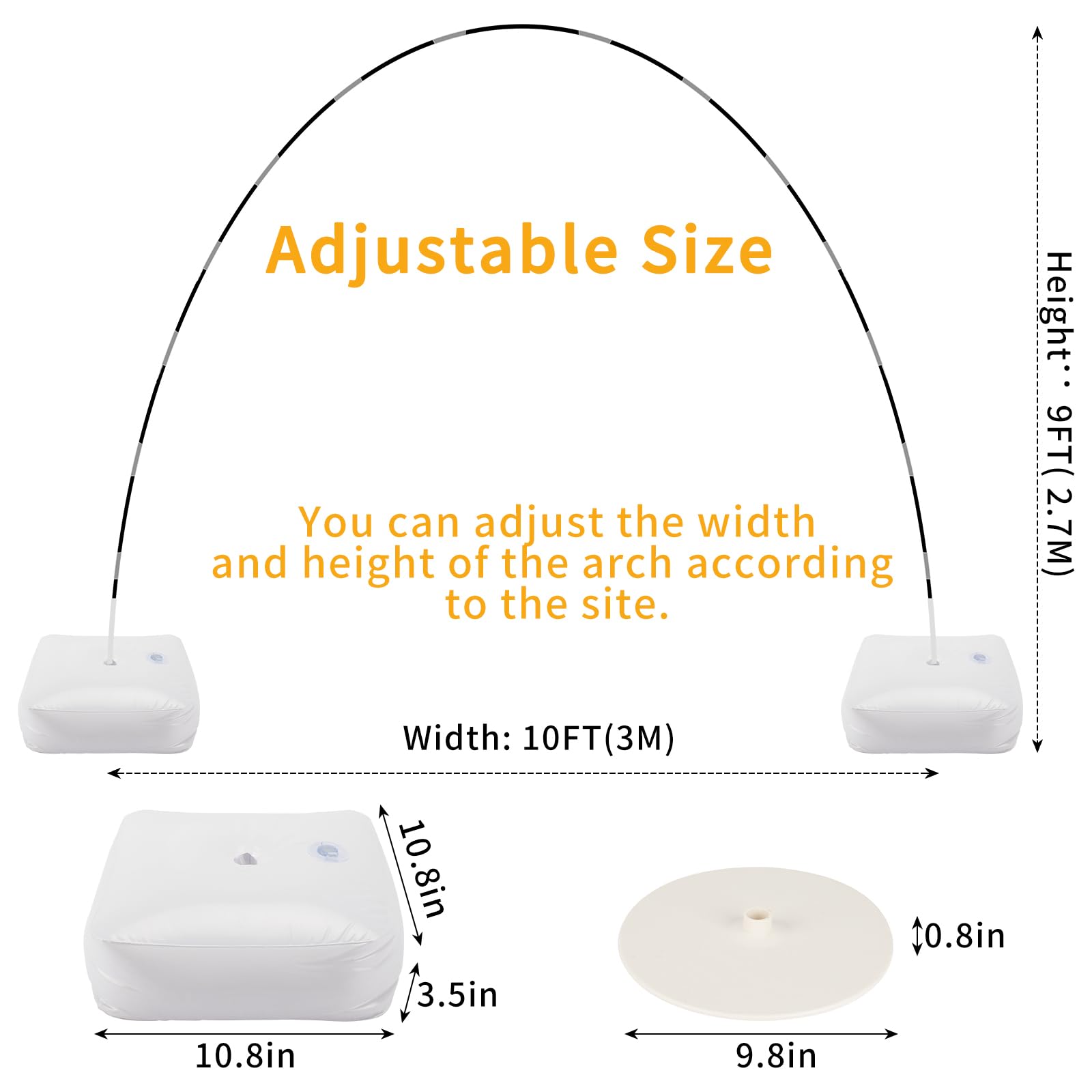 - Adjustable Size: The balloon column stand is 9ft tall and 10ft wide. The closer the distance and the higher the height. It is recommended that the distance between the base is greater over 8ft, and the water bags are filled with over 5kg (85% full)