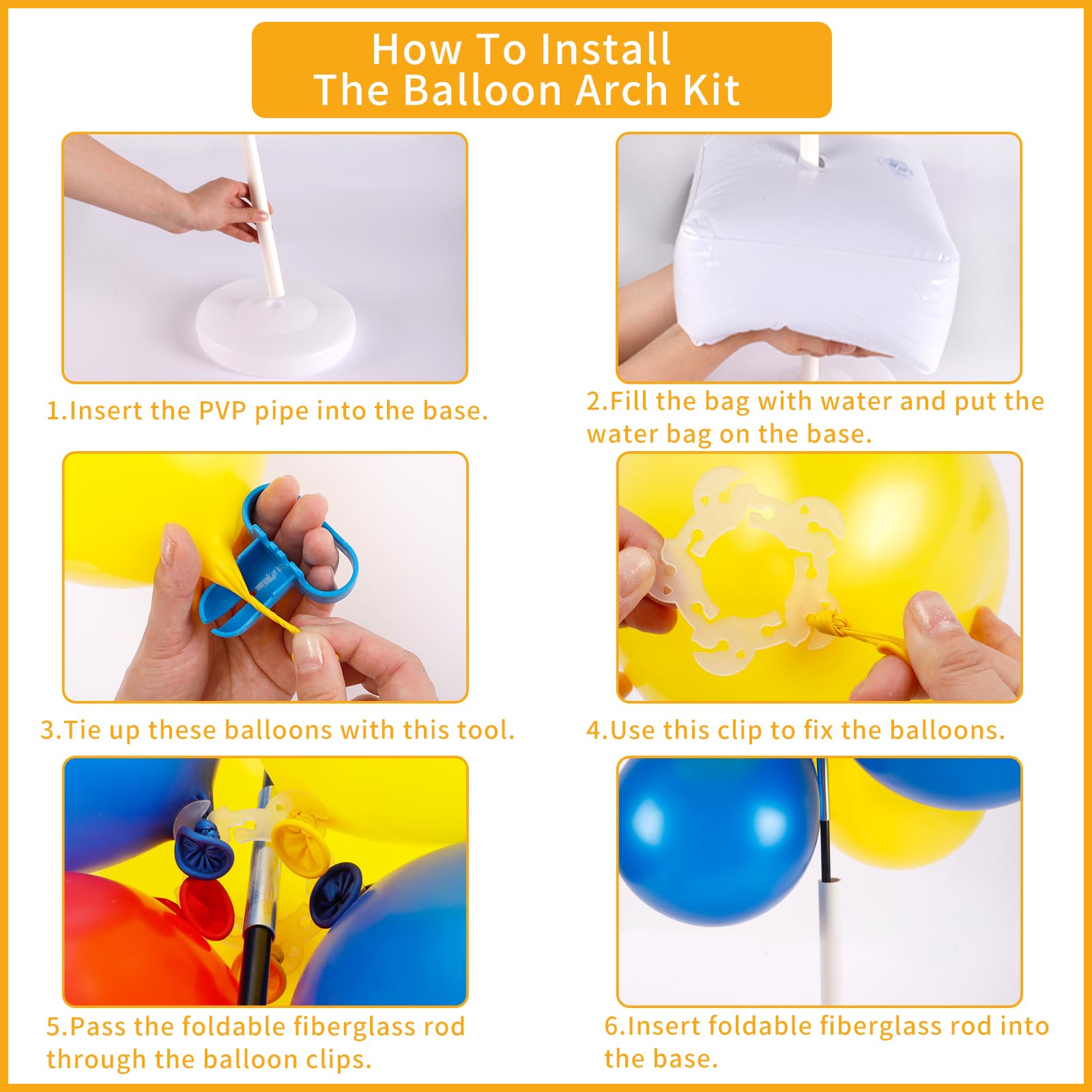 - High-grade Quality & Robust: The PVC pipes and the foldable fiberglass rods are very strong, not easy to break. To prevent the arch from shaking, you can put water or sand in a water filling bag. This balloon arch kit can be reused, so enjoy the fun of DIY arches.