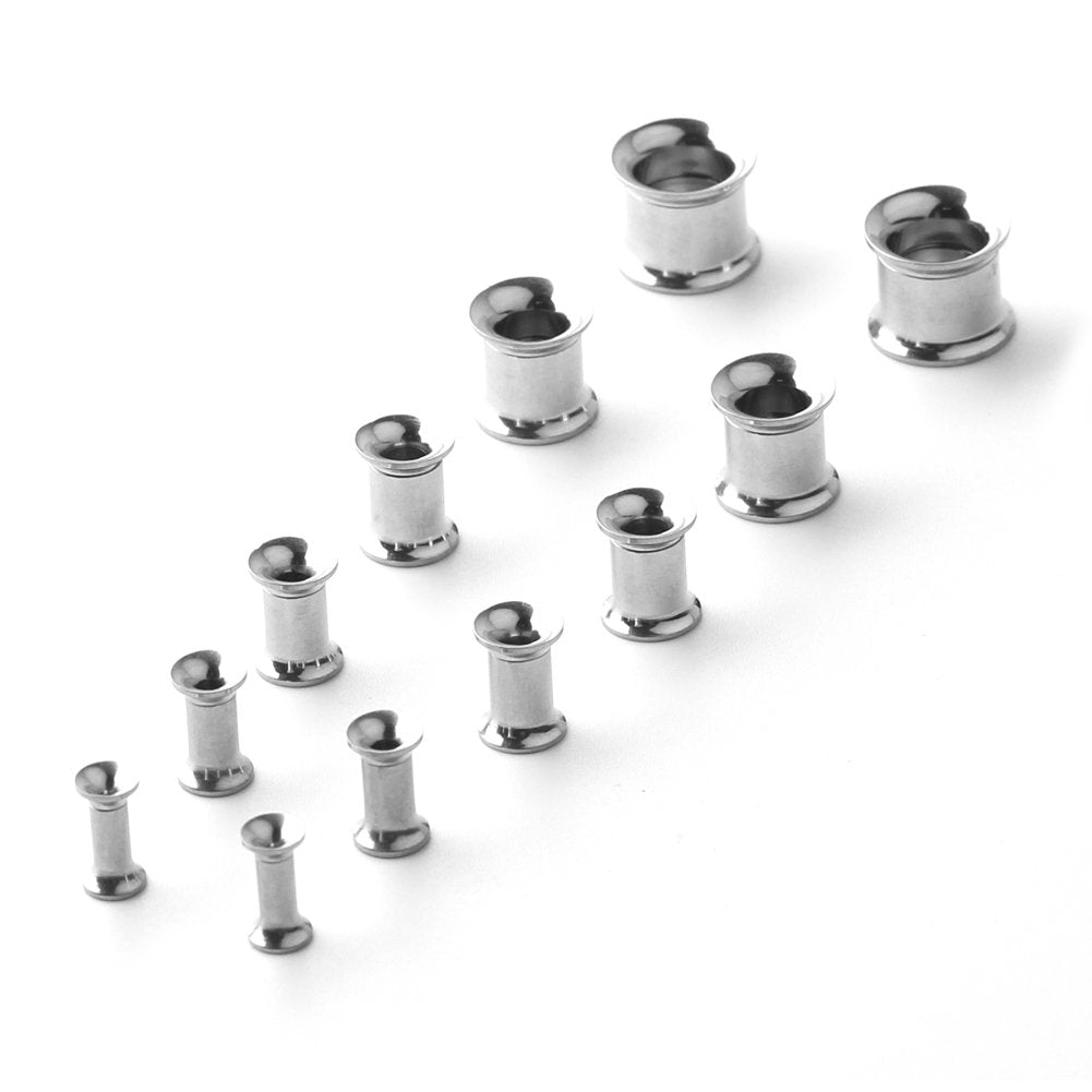 - 316L Stainless Steel Tunnel Plugs Sizes= 8G (3mm), 6G (4mm), 4G (5mm), 2G (6mm), 0G (8mm), 00G (10mm) - 2 qty of each size.