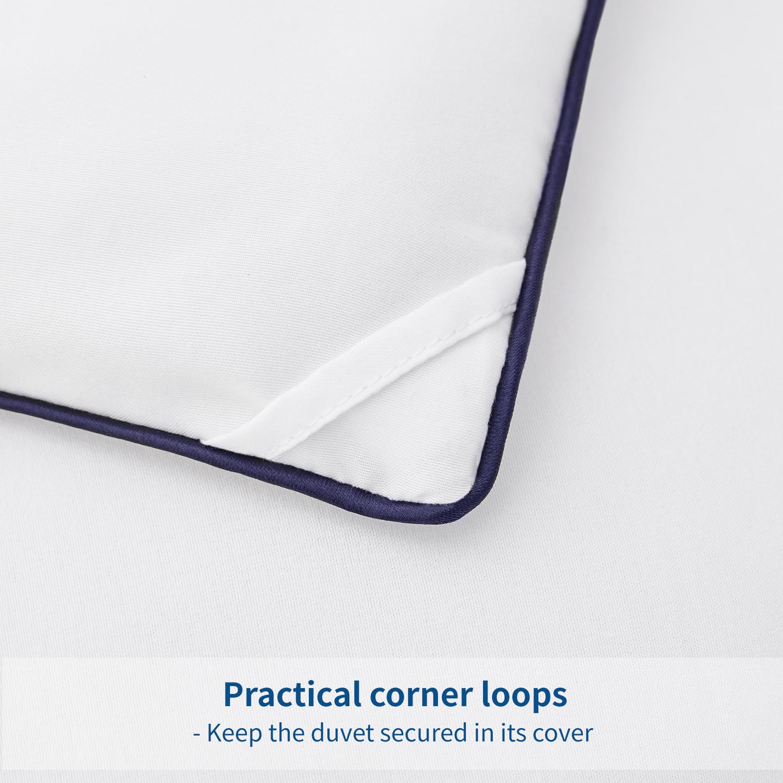 - Parallel navy blue piped edge is finished on the fluffy duvet insert, which not only gives a pop of contrasting color and a classic elegant look to the lightweight duvet insert, but also adds loft and overall durability to it as well