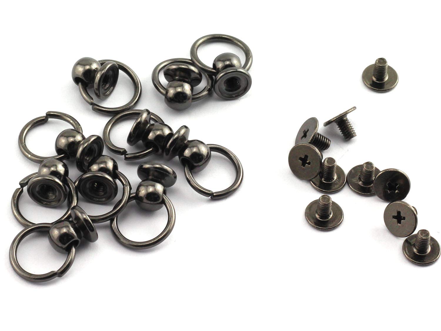 - Type: 30PCS Round Head Screwback Rivet Stud with Ring, Size 8x6mm, Screw length 5mm, 3 Color Optional: Silver, Black, Gold, to accord with your different leather craft DIY styles.