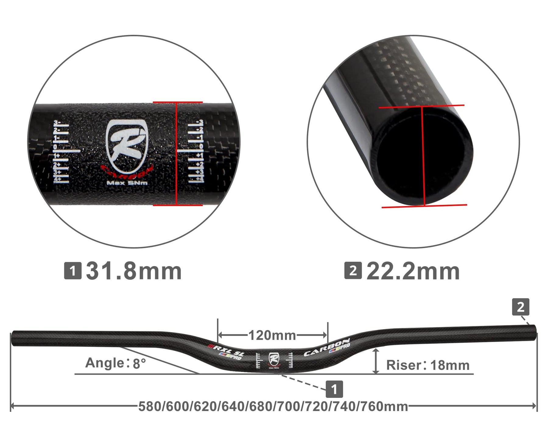 - Original Handlebars – MTB Handlebars, Mountain Bike Handlebars, MTB Bars Riser Handlebars 31.8, Carbon Fiber 720mm 740mm 760mm MTB Bike Handlebars MTB Handle Bars(Red pro 3K, 720mm) Bicycle Handlebars MTB Bars by RXL SL