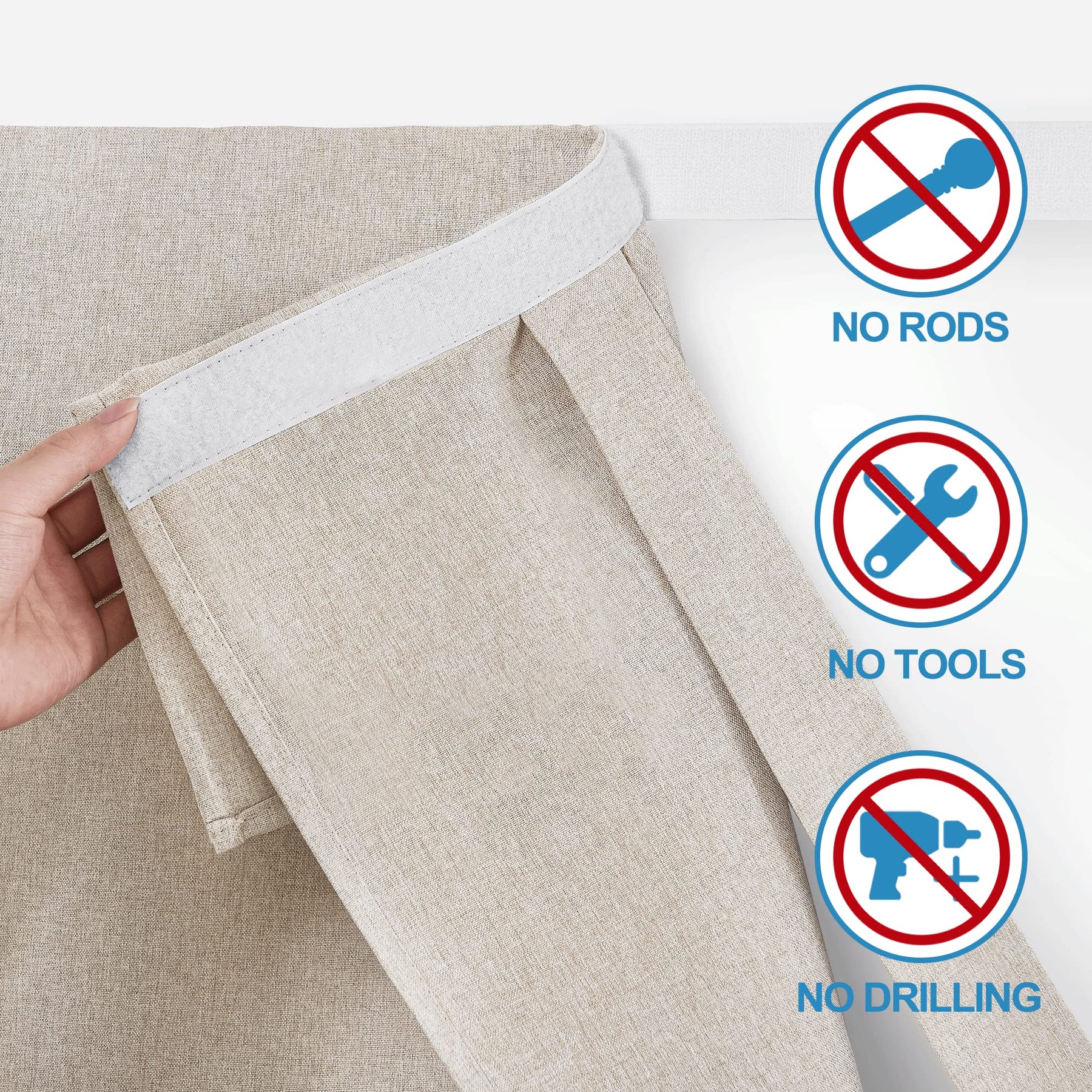 - WELL MADE: Package included All YOU NEED. 1 panel of room darkening curtains + free sticky straps. Curtains are made of high-quality linen blended fabric, the same fabric on both sides.