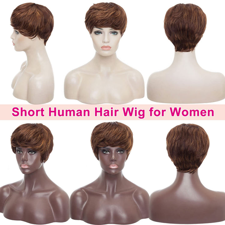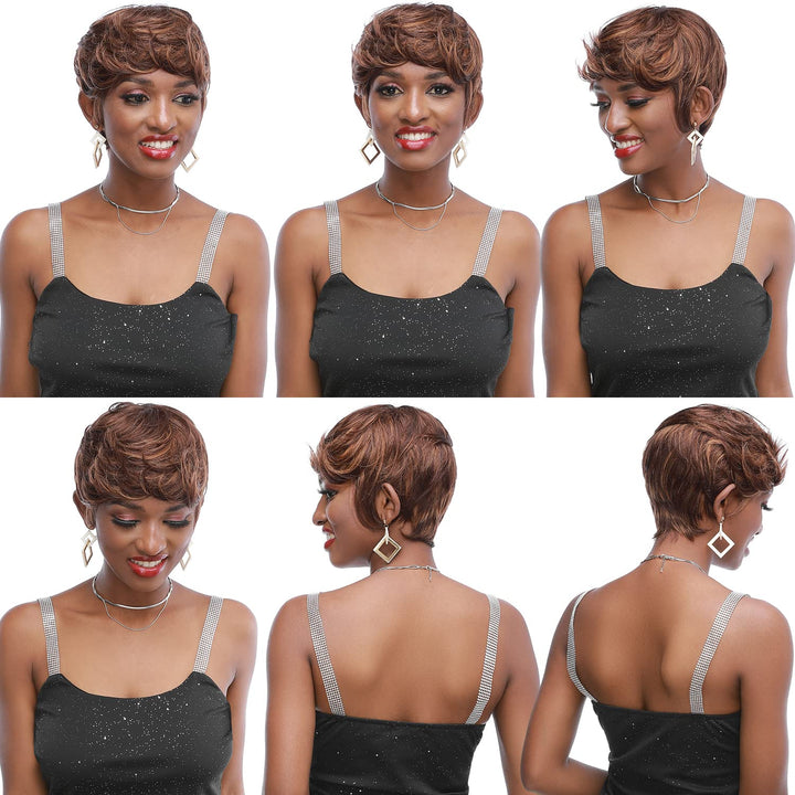 - Original Categories – Short Human Hair Wigs with Bangs Ombre Black to Burgundy Red Layered Wavy Short Pixie Cut Wig Dark Root 100% Human Hair Wig for Black Women Natural Daily Party by S-noilite