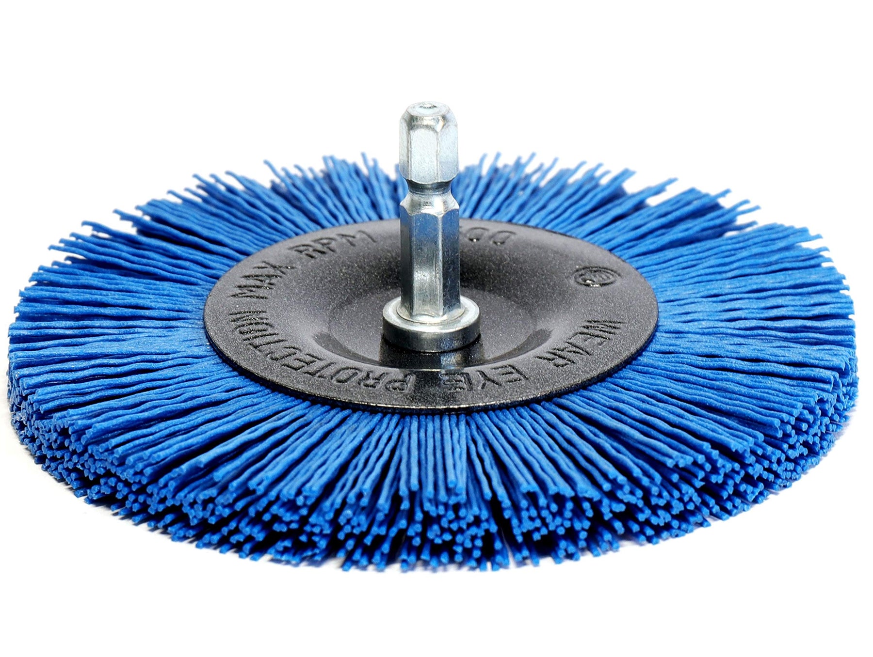 - Original Wheel Brushes – S&R Nylon - Disc Brush, Wire Brush Drill Bit 100 mm/ 4, Hexagonal Shaft 1/4' (6.35 mm) with FINE-Nylon-Wire for Cleaning and polishing Wood and Metal by S&R