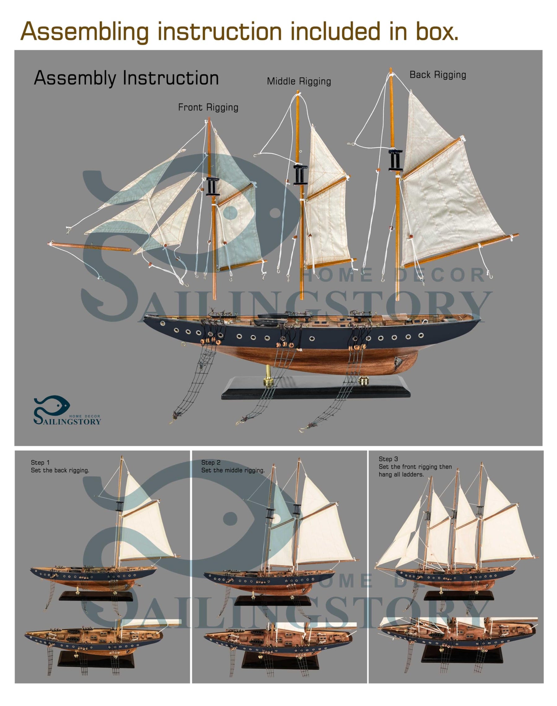 - Original Watercraft – SAILINGSTORY 30 Wooden Sailboat Model Ship Sailboat Decor Schooner Atlantic 1:50 Scale Replica Navy and Walnut Antique Finish by HOME DECOR SAILINGSTORY