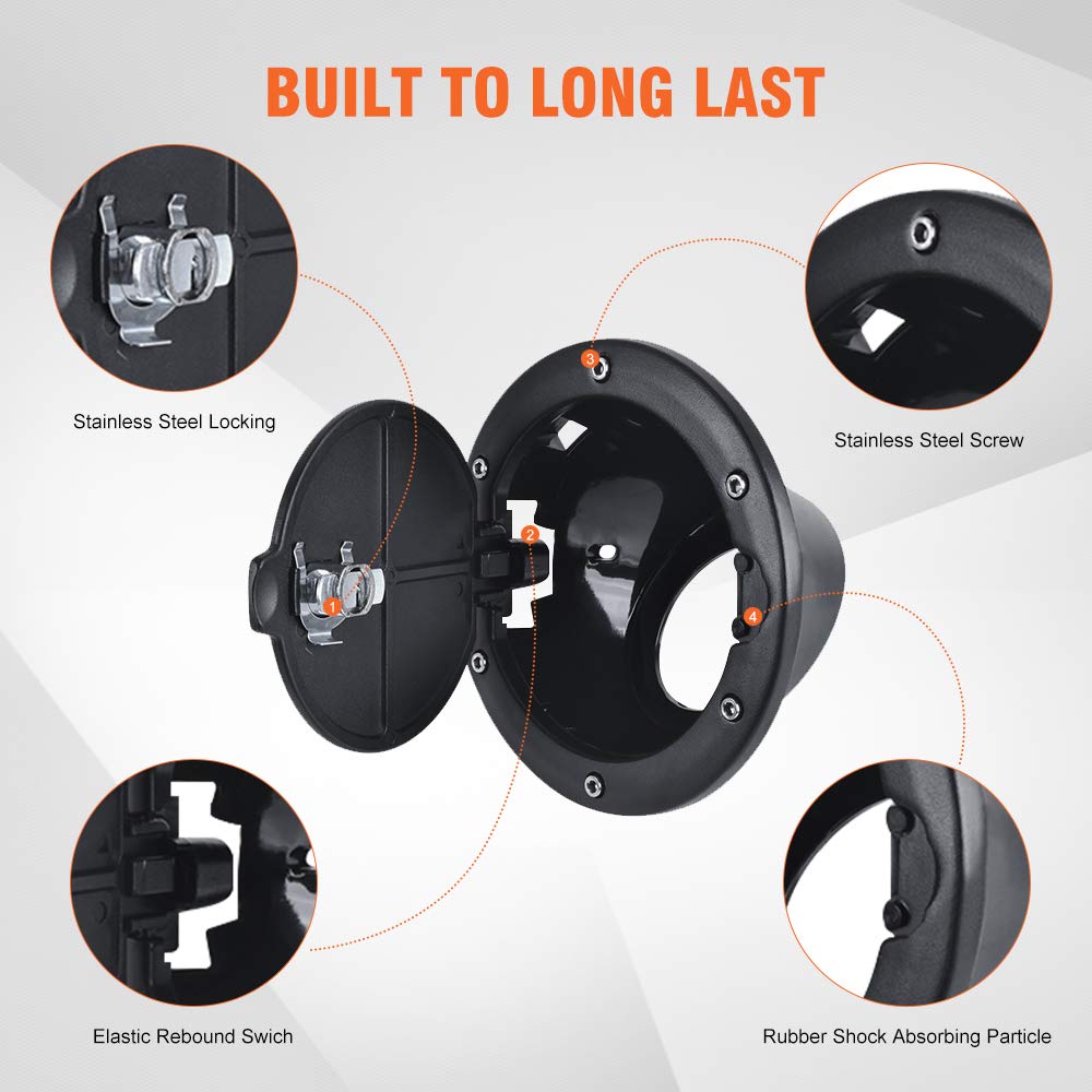 - # Durable Construction # ABS plastic bottom makes the locking gas cap cover more stable and strength when mounted, highly durable for long last using.