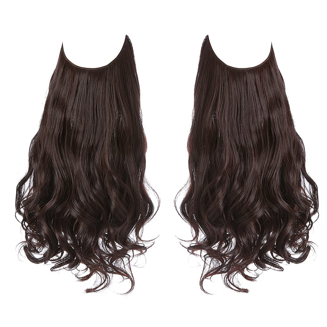 - Original Hair Extensions – Invisible Wire Hair Extensions with 3 Clips Long Synthetic Wavy Curly Hairpiece Adjustable Transparent Headband for Women 18 Inch Chestnut Brown by SARLA