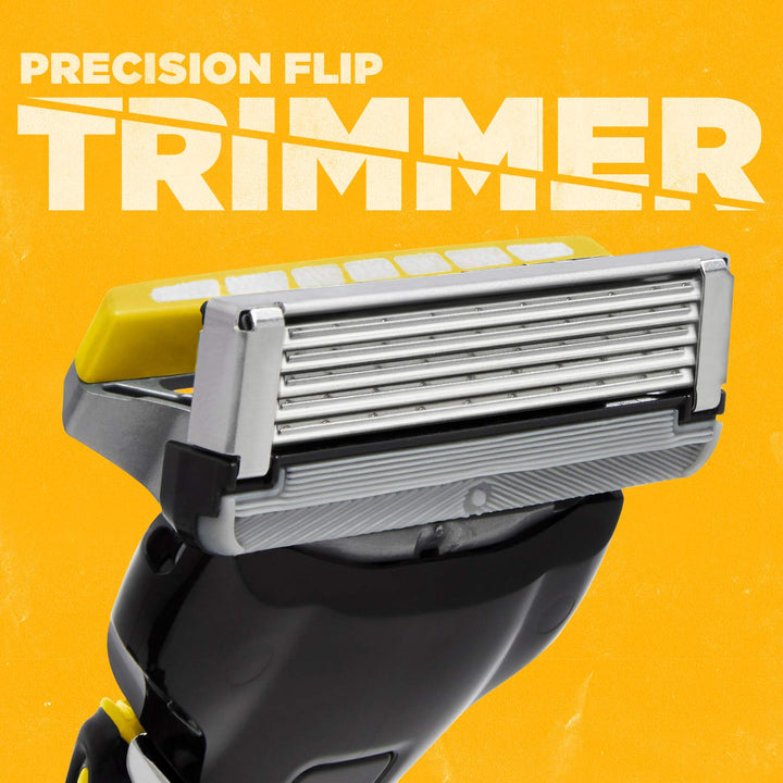 - Flip Trimmer for Hard-to-Reach Areas - Conveniently switch between shaving larger surfaces with all 5 blades, and precision trimming with single edging blade, all with a simple flip of the thumb