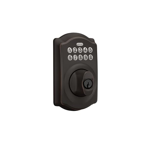 - Original Deadbolts – Schlage BE365 V CAM 716 Camelot Keypad Deadbolt, Electronic Keyless Entry Lock, Aged Bronze by SCHLAGE