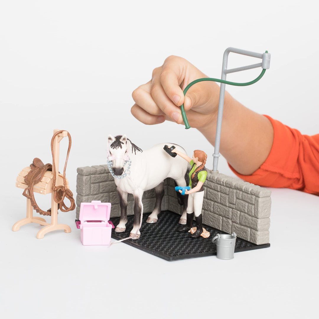 - HEALTHY IMAGINATIVE PLAY. The Horse wash area from Schleich is carefully designed to inspire safe and creative pretend play for children as both a single toy or part of a larger collection.