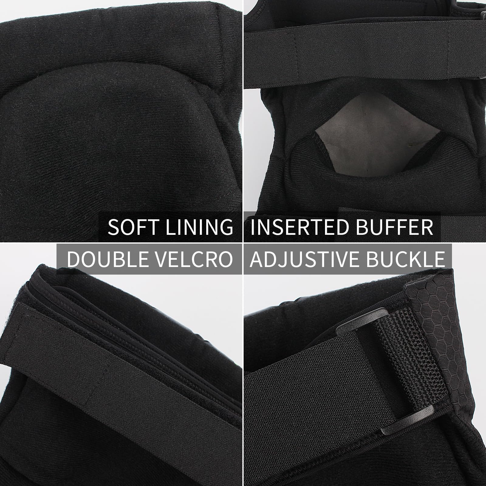 - ADJUSTABLEOur knee pads allow for QUICK and EASY application and removal. Double Hook&Loop is TIGHT, so there is no embarrassing situation of slipping.